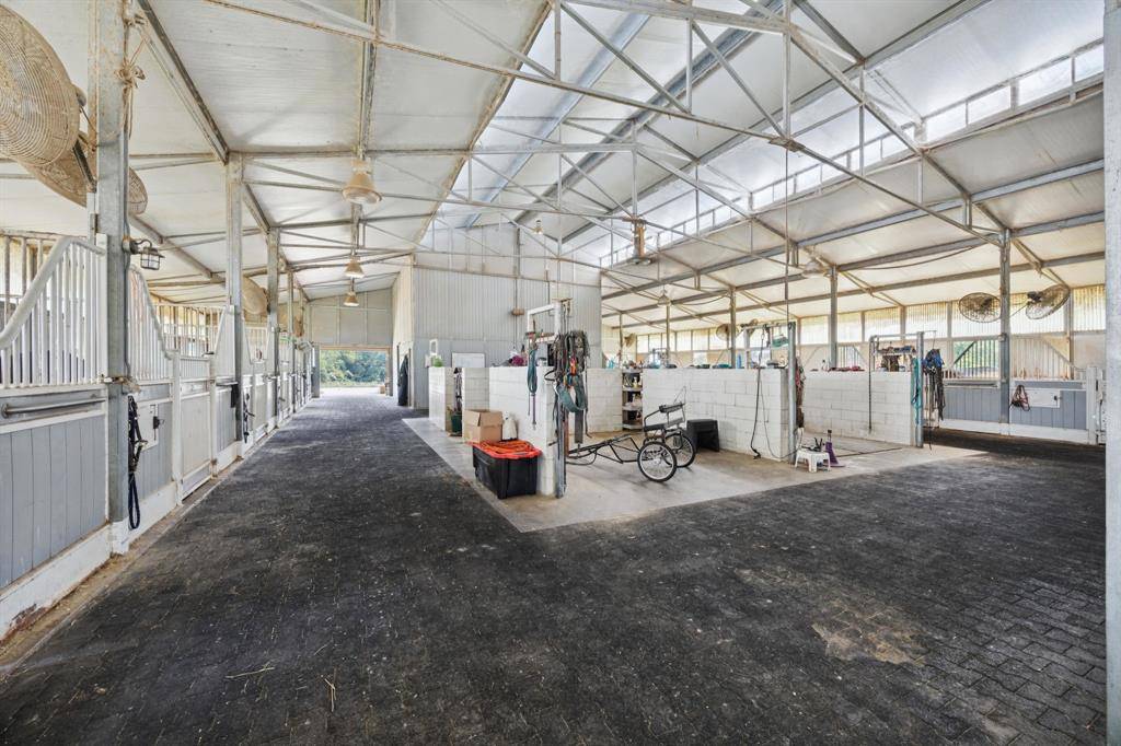 Outdoor amenities include a resort-style pool with fountains and fire features, a removable child-safety fence, and a 48 kW Generac generator with dual 1,000-gallon propane tanks powering the home for up to a week. The barn adds offices, restrooms, laundry, and a 1-bedroom apartment. Equestrian facilities include a 700 sq. ft. run-in shed, 13 stables, automatic watering stations, and an irrigated outdoor arena. The property also includes a FEMA-rated safe room, dual Brown Safe Co. safes, soft-close cabinetry, a 1.3-acre dog park with shower.