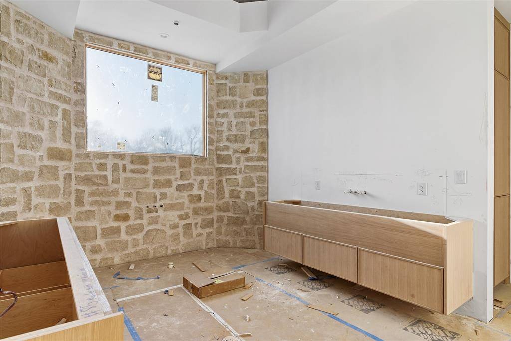 The private primary wing features a floor-to-ceiling stone fireplace, expansive windows, an exercise room, and a spa-inspired bath with coffee bar, dual vanities, soaking tub, oversized walk-in shower, dual closets, and a dedicated washer and dryer area.