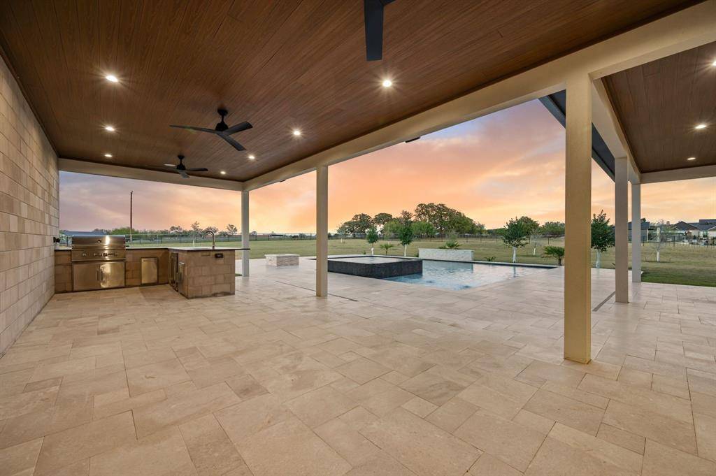 Priced to encourage strong interest - seller open to offers. Welcome to the prestigious Trifecta Estates of Bartonville. Positioned on a spacious 2-acre lot, this modern residence offers serenity, privacy, and refined contemporary design. With a seamless open floorplan, soaring ceilings, and abundant natural light from the extensive use of windows, the home brings together thoughtful architecture and effortless functionality. At the entry, a dramatic floating staircase with LED lighting establishes the tone for the home's sophisticated aesthetic. A dedicated office provides a quiet retreat for work or study. The expansive great room brings together living, dining, and entertaining with a balanced flow. Quartz Luxury Windows by Quaker frame beautiful views of the pool area and outdoor living spaces. The chef's kitchen is a center of craftsmanship and function. It features custom imported floor-to-ceiling cabinetry, an oversized island, and a high-performance appliance package that includes Dacor and Bosch. Additional features include a cabinet-front refrigerator, built-in coffee maker, 6-burner Thermador gas cooktop, wine fridge, ice maker, and a fully outfitted butler's pantry with an additional sink, refrigerator, and dishwasher. The primary suite is a private retreat with a spa-inspired bathroom that includes an oversized dual shower, luxurious tub, LED adjustable lighting, and a custom walk-in closet. Upstairs, a dedicated media room opens to a balcony with views of the property. All secondary bedrooms include ensuite baths and walk-in closets. The outdoor living area is designed for year-round enjoyment and includes a covered patio with a kitchen setup. The backyard features a large grassy area, a pool and spa with a waterfall feature, and a gas firepit. Bartonville offers the peace and charm of country living with convenient access to nearby amenities, equestrian facilities, restaurants, and daily conveniences, all while maintaining a quiet and private setting.
