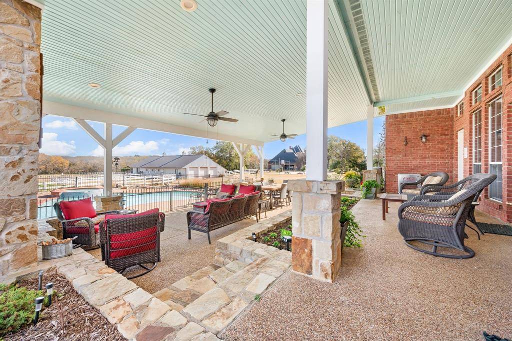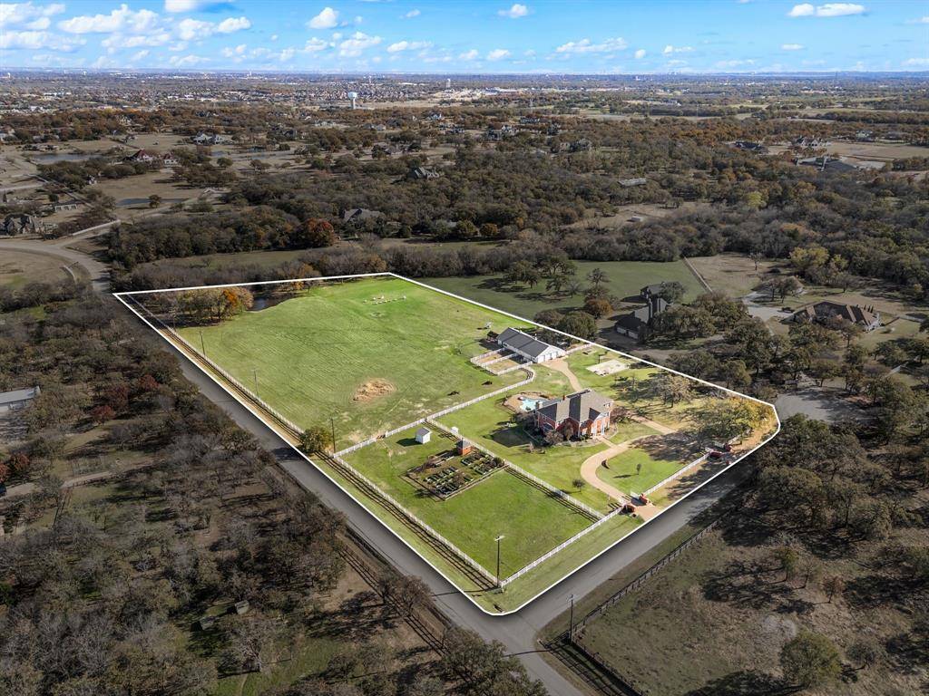 Welcome to an extraordinary gated estate in Bartonville, nestled on beautifully manicured acreage, framed by mature oak trees that provide timeless beauty, shade and privacy. This remarkable 5259 square foot residence offers 6 bedrooms and 4 bathrooms, including two Jack and Jill suites. It is thoughtfully designed for elevated living and sophisticated entertaining. The home features expansive, light filled interiors with elegant finishes and seamless flow throughout. At the heart of the home, the gourmet kitchen opens to generous living and dining areas, while the primary suite serves as a private sanctuary with tranquil views of surrounding grounds. Designed for exceptional outdoor living, the property boasts a stunning covered outdoor living space with a fireplace with pool and spa overlooking serene landscaping creating an ideal setting for relaxation and entertainment. Beyond the home, the estate is exceptionally well-appointed with a 4 stall barn, private pond, established garden, well house, and a deep well for irrigational needs. Gated access , full fencing and cross-fencing provide both security and versatility making the property ideal for equestrian use, hobby farming, or peaceful country living. Located on a quiet cut-de-sac, this estate is conveniently situated in Bartonville, within the top-rated Argyle ISD, and close to Liberty Christian School. Its convenience to DFW International Airport combines luxury, functionality, and accessibility. This rare offering is a truly exceptional opportunity to own a prestigious estate where refined living meets the serenity of wide-open space. AG exemption currently inplace and must be reapplied for when deed changes. DCAD is source of home square footage and acreage.