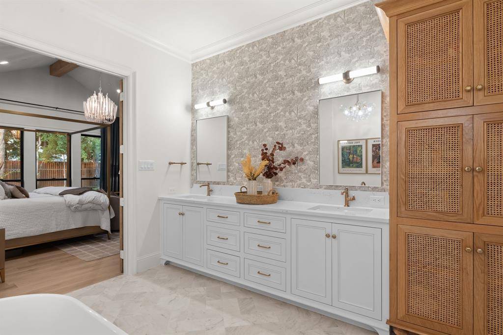 Experience the pinnacle of luxury living in this breathtaking 2023 custom-built single-story estate, tucked inside an exclusive gated community in coveted Copper Canyon and perfectly situated on a sprawling tree-lined lot with mature landscaping and serene surroundings. Designed in collaboration with a professional interior designer, this 5-bedroom masterpiece exudes timeless elegance and thoughtful functionality with soaring vaulted ceilings, hand-troweled walls, wide-plank character-grade hardwoods, and three sets of 10' custom iron double doors that flood the home with natural light. At its heart, the show-stopping gourmet kitchen boasts a statement La Cornue range, paneled appliances, dual dishwashers, and a hidden working kitchen for seamless entertaining. The private primary suite is a true retreat with a vaulted ceiling, cast stone fireplace, spa-inspired bath, boutique-style closet with island, and a concealed safe room. Additional features include a dedicated media room with 133” projector screen, premium AV system, whole-home audio, spray foam insulation, full-home water filtration, fire suppression system, designer lighting, and an elegant port-a-cochère. Offering an unmatched blend of architectural excellence, modern amenities, and exceptional craftsmanship, this extraordinary estate delivers a lifestyle of sophistication and comfort.