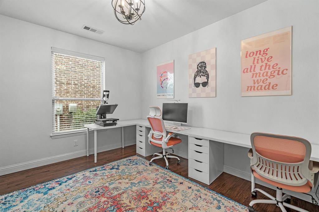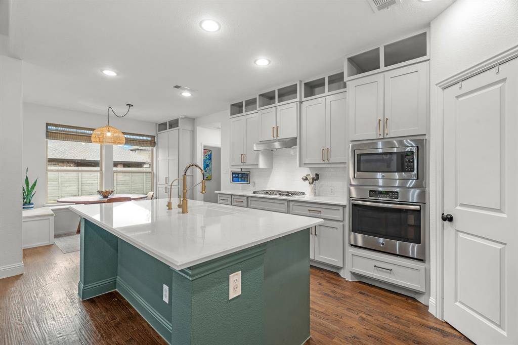 Located in Argyle, TX in the Harvest Community! Welcome to 1425 5th St, located in the heart of Harvest in Argyle, TX. This home is served by award-winning Argyle ISD, and is nestled conveniently near parks and greenspace, just a few blocks from the local coffee shop and community pool! Open space abounds in this 3517sf 2-story home with soaring ceilings, open-concept living and an loft-style bonus and media room. With 5BR, 3.5BA, over-sized office with french doors could be a 6th bedroom with a walk-in closet, and dedicated formal dining space there is room for everyone! This coveted floor plan brings you hand-scraped wood floors throughout, a large primary suite with an exceptionally spacious closet, and an additional bedroom and full bath all on the main floor. Best part, your guest on the main floor doesn't have to share everything - there is an additional half-bath for any extra visitors! When you visit, make sure you peek in the laundry room for fun pops of color that will make those menial loads feel vibrant and maybe even enjoyable. The kitchen is light and bright with tasteful accents, quartz countertops, 5-burner gas stove, stainless steel appliances, additional built-in cabinetry, a breakfast bar and a breakfast nook for those sleepy mornings over coffee. While your primary bedroom and bath have plenty of room to relax, your primary closet has room for your shopping habit any day of the week! Upstairs is a fun place for hangouts or movie watching in the media room, with extra large bedrooms and a full jack and jill bathroom complete with three sinks so everyone has their own spot for their toothbrush. Last but not least, a covered patio out back gives you the perfect amount of shaded space to watch whatever activities are happening in the large, fenced backyard or just sit and enjoy a quiet evening after a long day. If you're looking for square footage and the bedroom count to match - this is your spot! Schedule your showing today!