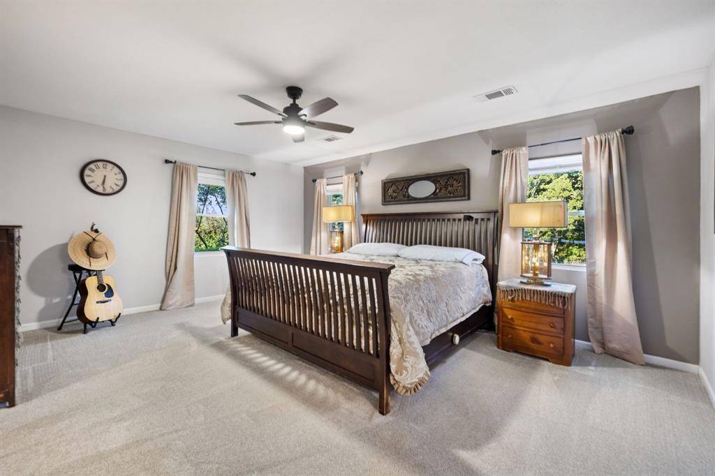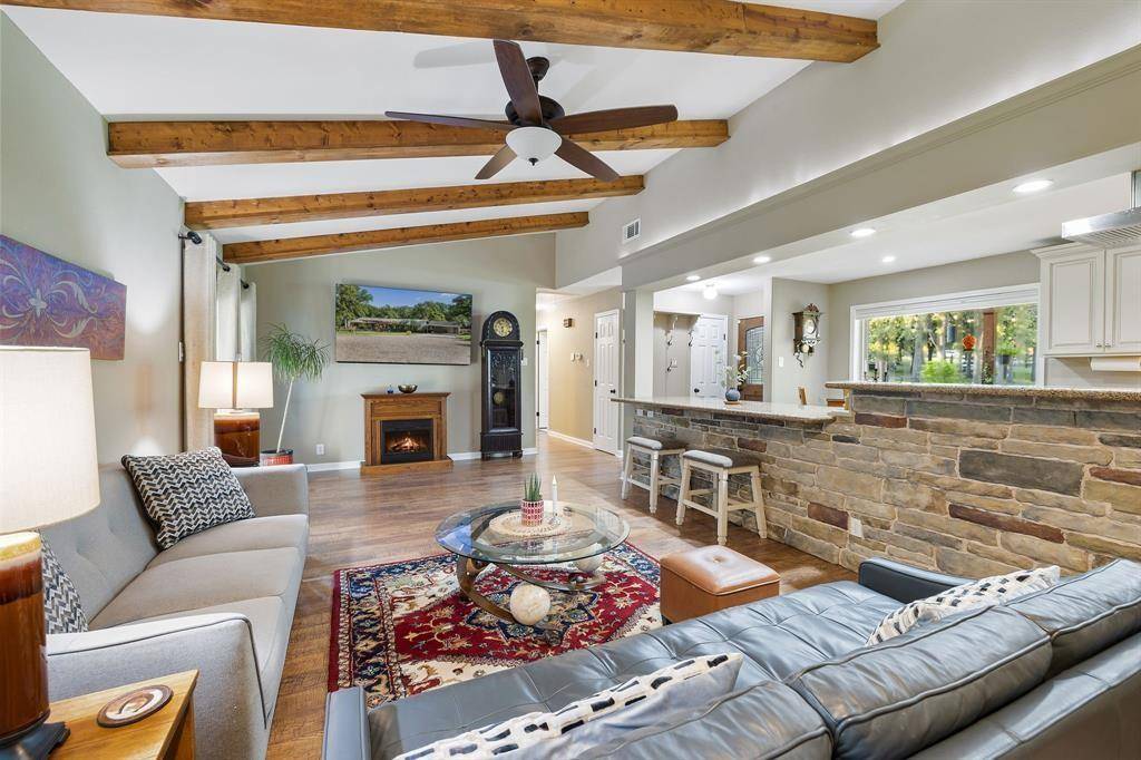 Welcome home to wide-open skies and four beautiful acres of peaceful country living. Take in breathtaking pastoral views and a charming seasonal pond that sets the scene for quiet mornings and golden Texas sunsets. Inside, the open floor plan was made for gathering with family and friends, featuring a warm and welcoming living area accented by rustic wood beams. The kitchen truly shines with granite countertops, generous cabinet and counter space, and a built-in wine cooler—perfect for hosting Sunday suppers or holiday celebrations. A second primary suite with a full ensuite bath offers comfort and privacy, ideal for guests or multigenerational living. Step outside and you'll find a property that's as functional as it is beautiful, complete with a powered storage building, greenhouse, and a 20x40 detached garage. An electric gate with two entrances provides both convenience and security, while a brand-new HVAC system and water heater (2024) and a Benjamin Franklin–maintained water filtration system add modern peace of mind. Unwind on the spacious covered flagstone patios or slip into the swim spa and let the day drift away. Blending thoughtful updates with timeless country charm, this special property is ready to welcome you home.