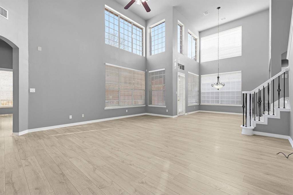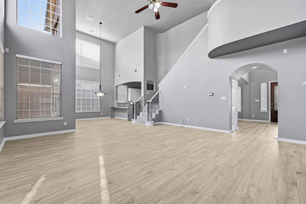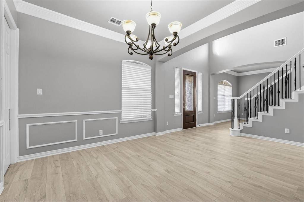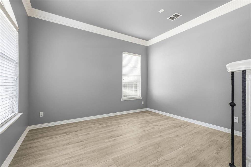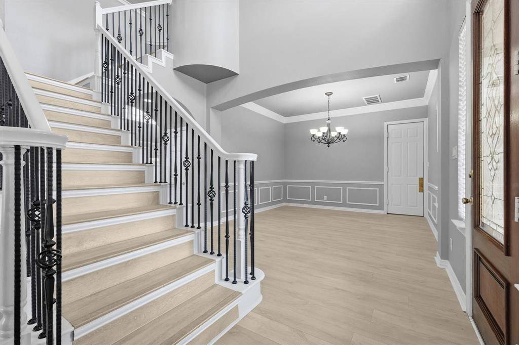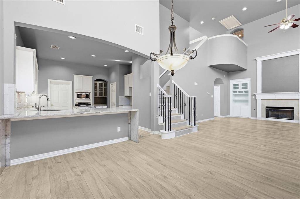 A Stunning Spacious Home in Wellington, this beautiful home in the highly desirable Wellington community blends with modern thoughtful updates, offering everything your family needs for comfort, space, and lifestyle. As you enter the house, everyone greeted by rich elegant flooring and a classic staircase that welcome you to this beautiful home. This home offers 4 bedrooms, 3.5 bathrooms, and 3 separate living spaces including a formal living room, family room, game room plus a dedicated office for today's work-from-home needs. The primary suite is located downstairs and serves as a relaxing retreat with a walk-in shower, dual vanity, recently updated custom walk-in closet, generous storage to keep life organized. A bar area for your entertainment need located between formal dining and kitchen with built in cabinet and a swing door. The kitchen is the heart of the home with a downdraft electric cooktop, center island, breakfast bar, and ample cabinetry, making it both functional and inviting. The open living room features soaring ceilings, creating a bright and airy space ideal for everyday living and entertaining. Large windows bring in abundant natural lights. Feature owner will be able to add a media if wish to, there is a plenty of attic space available next to game room. A private backyard with about 492 sqft covered patio perfect for outdoor gatherings or relaxing evenings and this back has enough space to build a pool. This beautifully maintained two-story home offers a thoughtful layout, stylish updates which include bathrooms, kitchen and closets and plenty of space for your storage need. Two-car garage, great curb appeal, and a welcoming neighborhood, and this home truly checks all the boxes. Ideally located near parks, community pool, shopping, dining, and top-rated schools, this Flower Mound home is a rare find—don't miss your opportunity to make it yours!