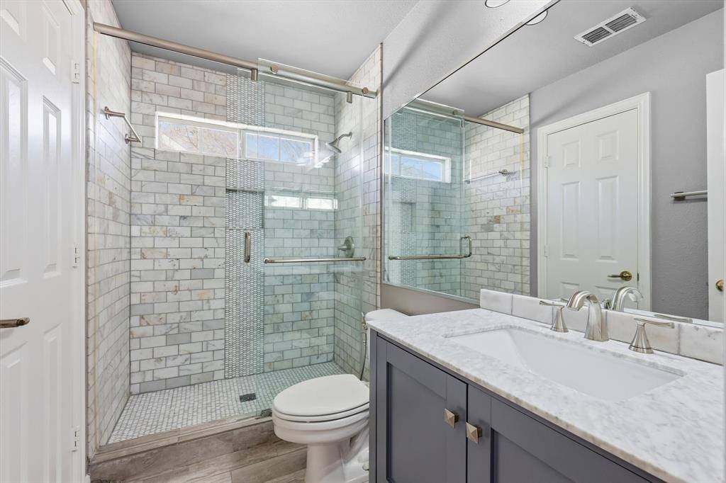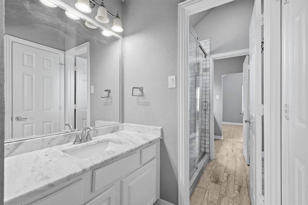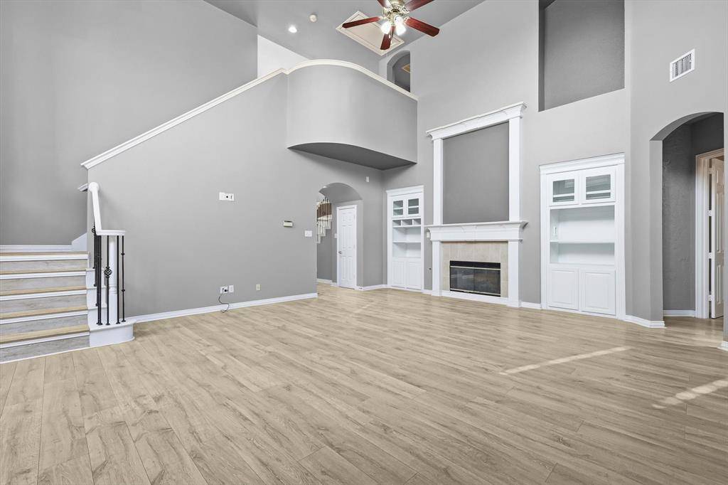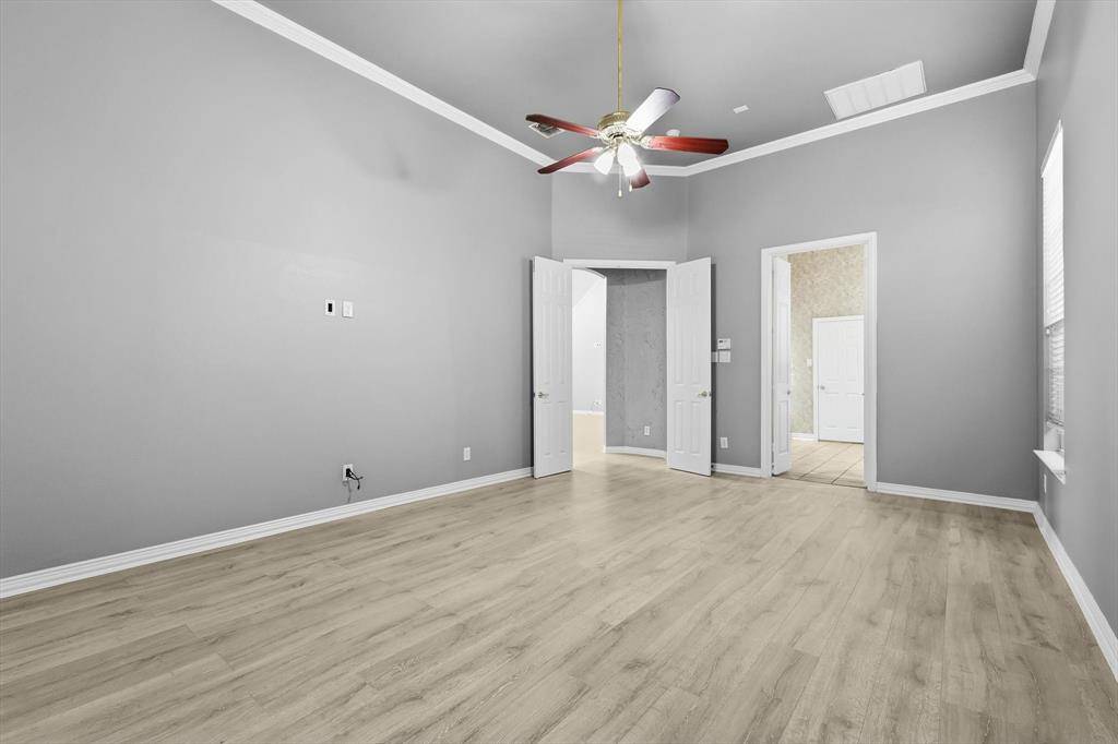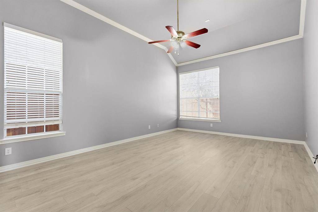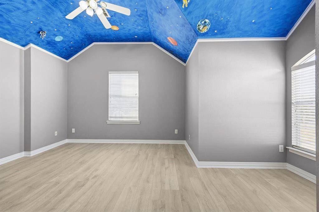 A Stunning Spacious Home in Wellington, this beautiful home in the highly desirable Wellington community blends with modern thoughtful updates, offering everything your family needs for comfort, space, and lifestyle. As you enter the house, everyone greeted by rich elegant flooring and a classic staircase that welcome you to this beautiful home. This home offers 4 bedrooms, 3.5 bathrooms, and 3 separate living spaces including a formal living room, family room, game room plus a dedicated office for today's work-from-home needs. The primary suite is located downstairs and serves as a relaxing retreat with a walk-in shower, dual vanity, recently updated custom walk-in closet, generous storage to keep life organized. A bar area for your entertainment need located between formal dining and kitchen with built in cabinet and a swing door. The kitchen is the heart of the home with a downdraft electric cooktop, center island, breakfast bar, and ample cabinetry, making it both functional and inviting. The open living room features soaring ceilings, creating a bright and airy space ideal for everyday living and entertaining. Large windows bring in abundant natural lights. Feature owner will be able to add a media if wish to, there is a plenty of attic space available next to game room. A private backyard with about 492 sqft covered patio perfect for outdoor gatherings or relaxing evenings and this back has enough space to build a pool. This beautifully maintained two-story home offers a thoughtful layout, stylish updates which include bathrooms, kitchen and closets and plenty of space for your storage need. Two-car garage, great curb appeal, and a welcoming neighborhood, and this home truly checks all the boxes. Ideally located near parks, community pool, shopping, dining, and top-rated schools, this Flower Mound home is a rare find—don't miss your opportunity to make it yours!