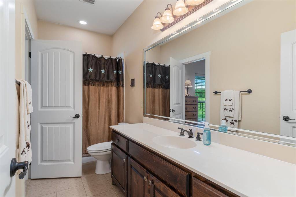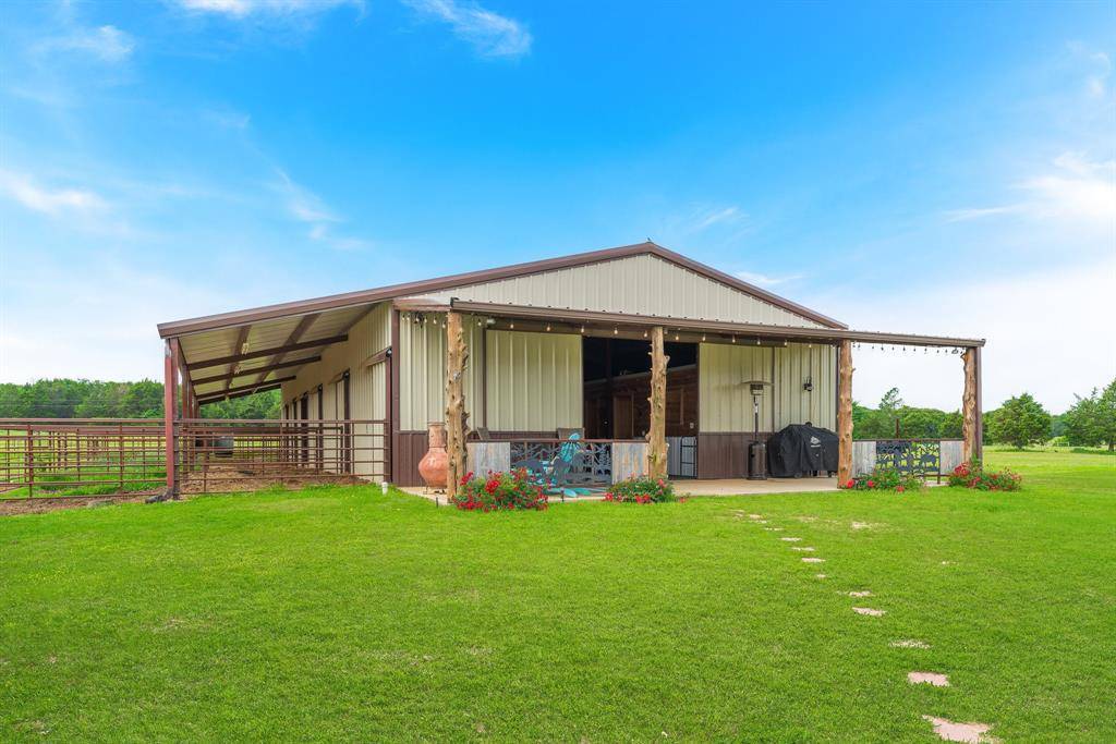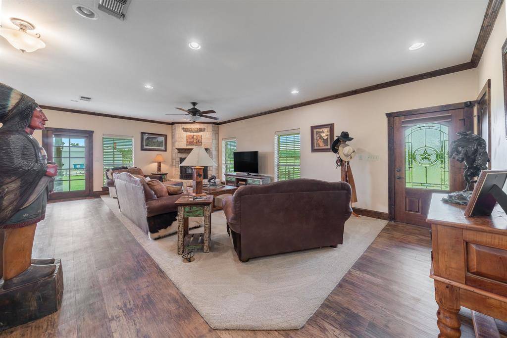 Nestled on 15 beautiful acres in sought-after Mountain Springs in Cooke County, this exceptional property blends timeless brick and Austin Stone architecture with thoughtfully designed equestrian amenities. The well-appointed kitchen features alder cabinetry, granite countertops, gas range, and an oversized island that flows seamlessly into the dining and living areas. A spacious living room with fireplace creates a warm gathering space, while the private primary suite offers dual vanities, large walk-in closet, and spa-like bath. Enjoy panoramic views from the wraparound porch overlooking the brand-new saltwater pool and picturesque countryside. The property is fully fenced and cross-fenced with sandy soil and Ag exemption in place. Equestrian improvements include a custom 6-stall barn with 12' covered runs, expansive tack room, office, bathroom, and covered front porch with room to add additional stalls. Just contracted 60' round pen and 100' x 100' outdoor riding arena with viewing deck provide exceptional training space. Additional features include a 30' x 40' shop with electricity and 15' overhang, second 30' x 40' barn with 20' overhang, 1.25-acre pond, two loafing sheds, chicken coop, raised garden beds, and gated entrance. A rare opportunity for refined country living with turnkey horse facilities in one of North Texas' most desirable rural communities. Six 50 Amp and water hookups, thermostatically controlled pellet Stove, Abundant Closet Storage throughout the house.