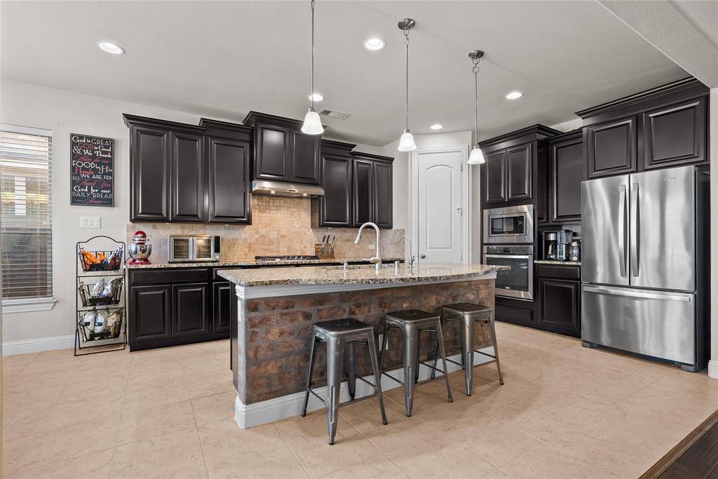 The open-concept kitchen is designed to impress, featuring a large center island and beautiful granite countertops—perfect for cooking, entertaining, and gathering with family and friends while staying connected to the main living space.