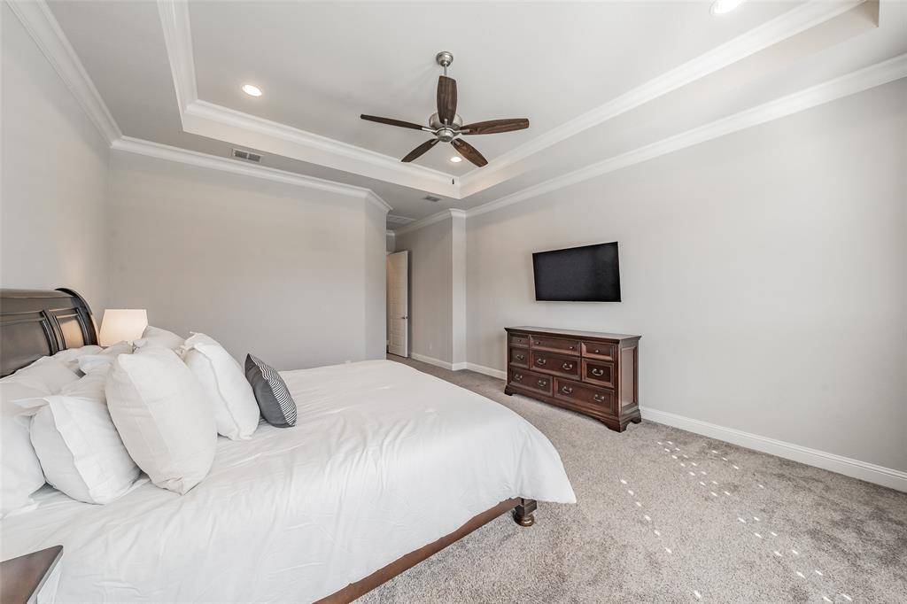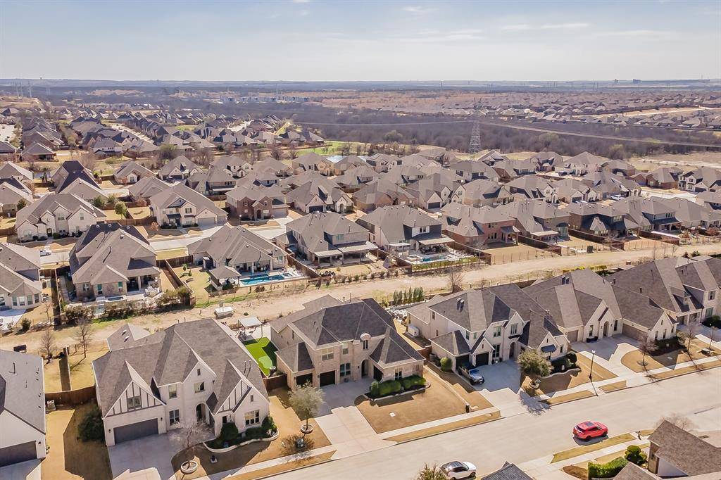 Welcome to 11609 Little Elm Creek Road in Canyon Falls – Argyle ISD! Built by Drees Homes, this exquisite 3,980 sq ft north-facing home features 4 bedrooms, 4 baths, a study, game room, media room, and 3 car garage. The grand entry showcases a breathtaking spiral staircase and beautiful flooring throughout the main living areas. The study is situated off the entry. The living room, kitchen, and dining area flow seamlessly in an open-concept layout. The living room features a stunning Heatilator fireplace, while the kitchen boasts a large island, gorgeous countertops, abundant cabinetry, and 2 pull-out spice racks. The dining area easily accommodates an oversized table. A desk area and walk-in pantry are just off the kitchen. Tucked away at the back of the home, the primary suite offers a spa-inspired bath with a walk-in shower, soaking tub, and spacious closet that connects to the laundry room with a sink. The kitchen pantry, primary closet, and laundry room include custom Elfa shelving for incredible organization. A secondary bedroom and full bath are located downstairs. The home continues to impress upstairs with a beautiful game room, a private media room, a secondary primary suite, and an additional bedroom with a full bath that also opens to the hallway. The backyard is perfectly positioned to enjoy breathtaking year-round sunsets. The backyard features a pool and spa with a bubbler and 3 water features, controlled via an app. Other backyard highlights include a covered patio, pergola, and private putting green. Canyon Falls HOA includes 2 resort-style pools, clubhouse with fitness center, playgrounds, splash pad, dog park, and miles of trails, plus front yard lawn maintenance, TV, and internet service. This home is located in the lowest property tax rate in Canyon Falls and zoned to highly rated Argyle ISD, with Argyle South Elementary and Argyle High School within walking distance. Schedule your showing today to experience the ultimate in luxury living!