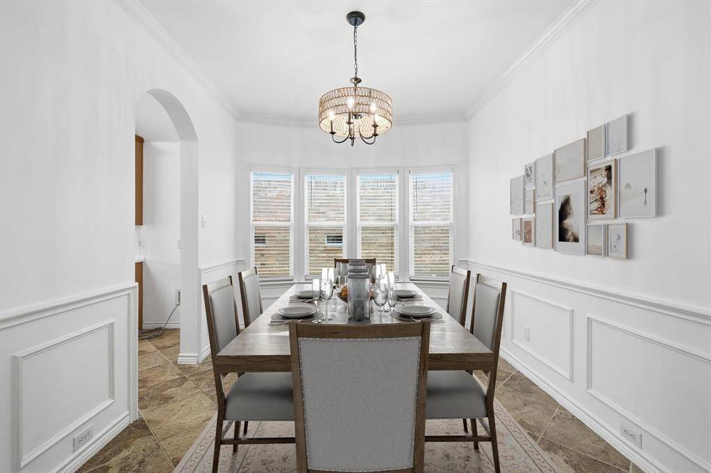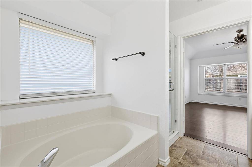 A formal dining room offers flexible space that can also serve as a home office or additional living area. The spacious owner's retreat overlooks the backyard and features a beautifully updated ensuite bath with a new shower, quartz countertop, fixtures, and a separate soaking tub.