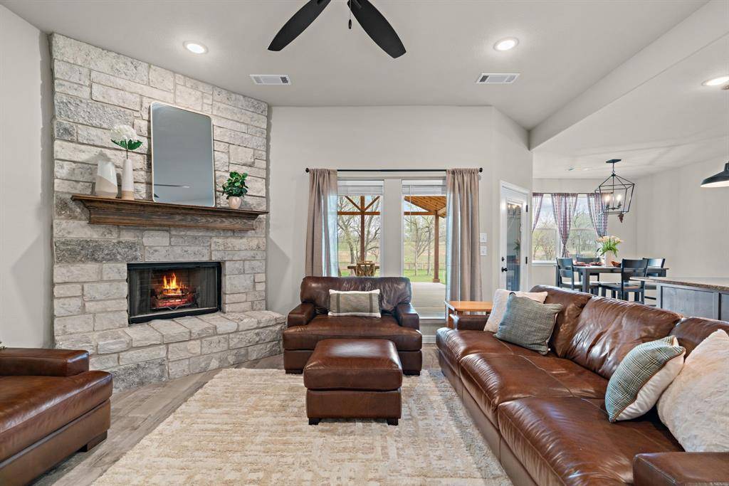 The heart of the home flows effortlessly to a brand new extended and covered 20x20 back porch — ideal for hosting backyard dinners, enjoying quiet mornings with coffee, or unwinding at the end of the day while watching those wide-open Texas sunsets stretch across the pasture behind you.