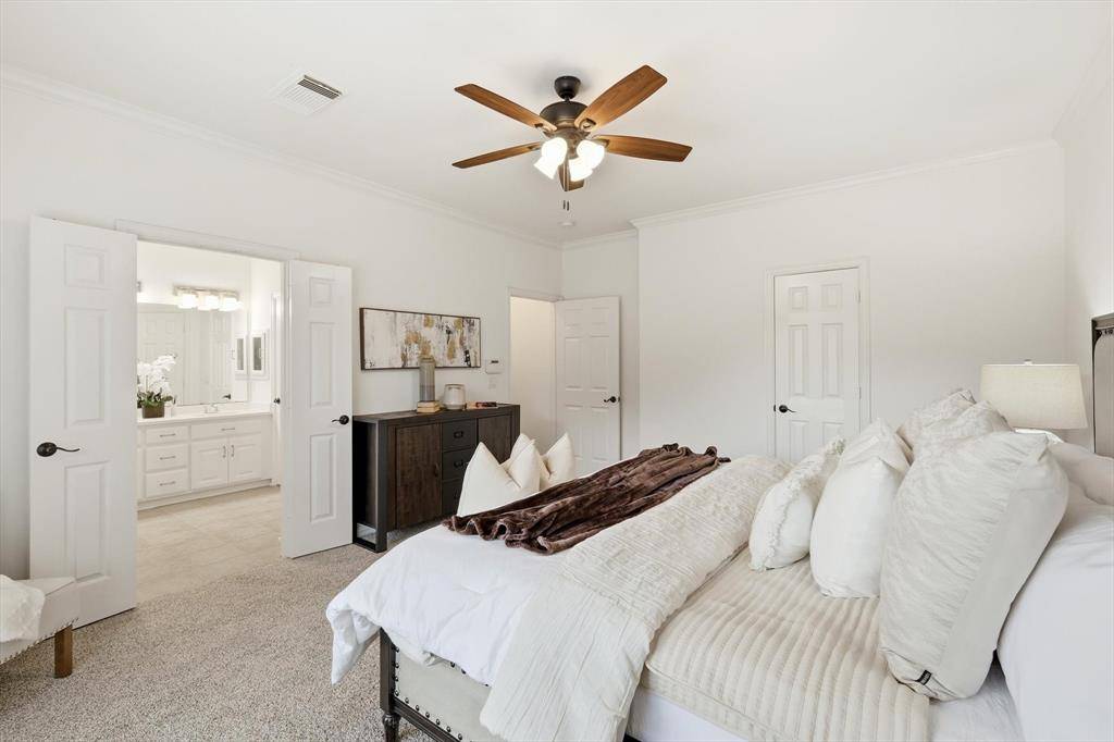 FINALLY! A MOVE IN READY & OH SO FRESH gorgeous home located on a coveted CUL DE SAC! MATURE TREES create an inviting storybook feeling, complementing the charm of this home located in the highly sought-after Castlewood community, on a quiet & quaint no-through traffic street. This exceptional residence is LIGHT, BRIGHT & CHEERY! You will LOVE all the many WALK IN CLOSETS in the hallways & bedrooms as well as a HUGE LAUNDRY room for STORAGE! Linger over treasured family time with a formal DINING ROOM! HUGE GAMEROOM! With 5 spacious bedrooms AND 4 FULL bathrooms, this home provides PRIVACY FOR EVERYONE with 2 bedrooms and 2 bathrooms downstairs and a SPLIT BEDROOM PLAN! The downstairs primary suite offers two WALK IN closets, dual sinks with quartz counters, a relaxing soaking tub, and a walk-in shower. You'll appreciate the many recent updates: FULL INTERIOR PAINT throughout, NEW CARPET in bedrooms and gameroom, UPDATED LIGHTING & OVERSIZED 2 GARAGE WITH FRESH EPOXY. Downstairs HVAC 2024! 2 water heaters 2023! SOD 2025! This neutral and transitional home will calm your senses and give you a sense of peace and tranquility. Rich engineered wood floors in the family room! GAS FIREPLACE! Very SPACIOUS KITCHEN features an ISLAND, NEW TILE FLOORS, QUARTZ COUNTERS & SLAB BACKSPLASH, NEW SINK & DISPOSAL, DOUBLE OVENS in 2022, WALK IN PANTRY, GAS COOKTOP & UNDER CABINET LIGHTING! Do you want to enjoy the weekend and some new hobbies, now you can with this easy to maintain backyard! Enough grassy area for your pup and the rest of the backyard you can just sit back and relax in! Concrete pad ready for hot tub! Walk the kids to the nearby PARK, SWIMMING POOL, CLUBHOUSE, PICKLEBALL, TENNIS, VOLLEYBALL & SOCCER COURTS! Just minutes from premier shopping at the outdoor mall, LAKE LEWISVILLE FOR BOATING & FISHING, COUNTLESS DINING OPTIONS, movie theatre, parks, TONS OF SCENIC WALKING TRAILS, TOP-RATED schools! Near the new COSTCO,SUPER TARGET,LOWES,MARKET STREET & WHOLE FOODS!