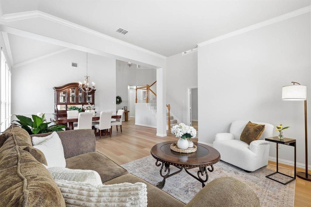 This stylish and functional home is ready for move in. Fresh paint and new floors throughout enhance the incredible value in this 5 bedroom 4 bath home in the award winning golf community of Lantana. The first thing you'll notice is just how much space there is in every room! The dedicated home office is no exception. With room for 2-3 desks and floor to ceiling built ins, you'll never need to commute. Formal living and dining rooms allow for entertaining, large holiday gathering spaces, or a music room. The main floor guest room is tucked away from the primary bedroom and has a full bath attached. And just wait until you see the kitchen! There you'll find wide open spaces and tons of cabinets and counter space. Flowing into the living room you'll love the natural light and ample space for relaxing. Out back you'll find a custom pool built for a friendly volleyball game on one side with a deeper side and a slide on the other. And the best part? You don't have to sacrifice yard space. The game room upstairs is perfect for movie nights, exercise space, or sleepovers and it has built ins to store books, collector items, or toys. With 3 bedrooms and 2 baths upstairs everyone can have their own space to relax. You can even ditch your gym membership because Lantana has 2 fully stocked fitness centers, tennis, basketball, and pickleball courts, and miles of hike and bike trails. Community amenities and convenience plus fresh, updated paint and floors with a main floor guest room and a pool AND a large yard makes this home the place you want to be!