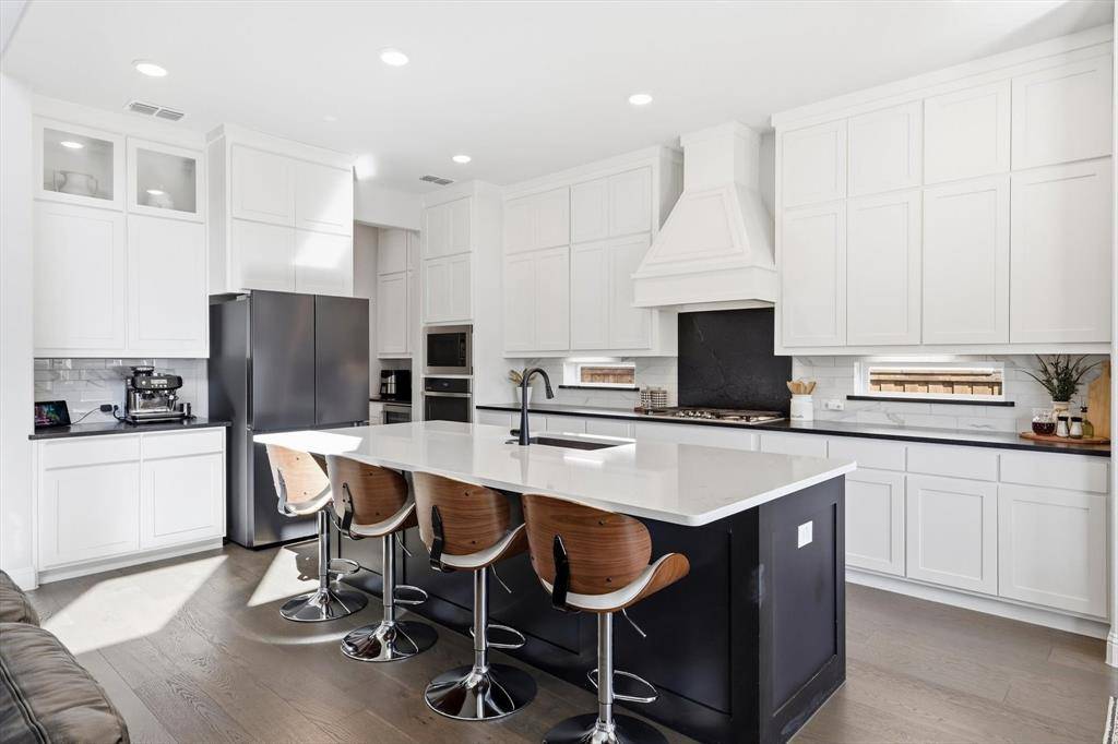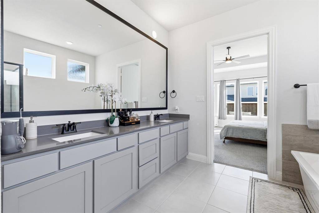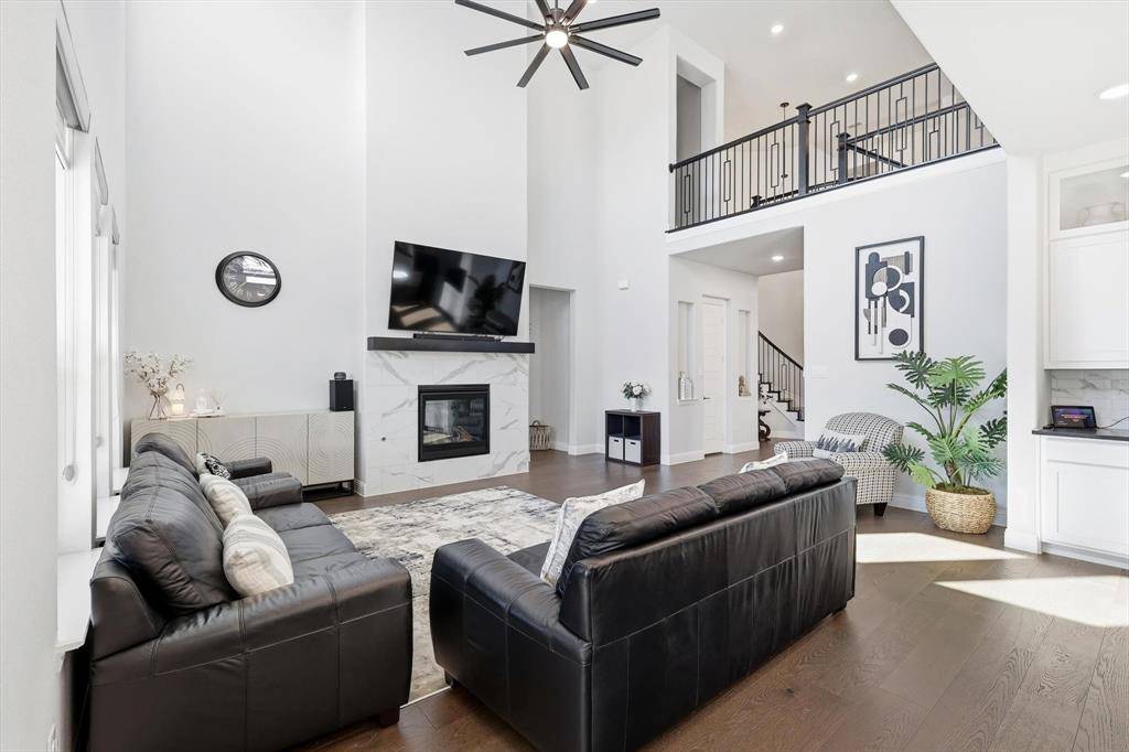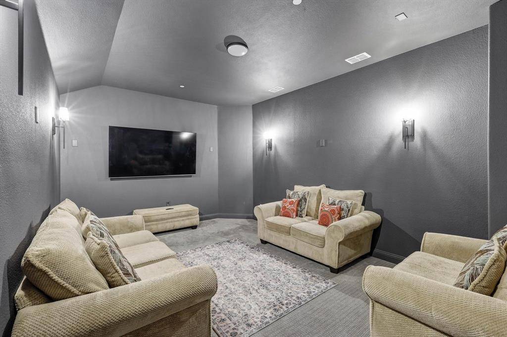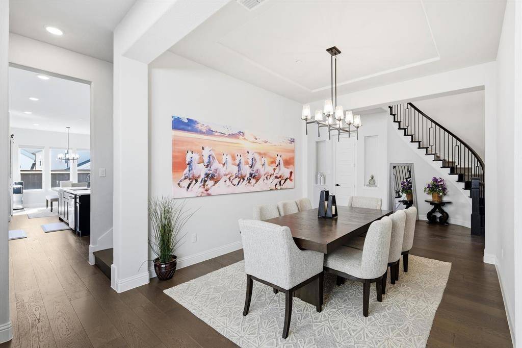 Welcome to this exceptional home in a gated community offering 4,490 sq ft of upgraded luxury with 5 beds and 5.5 baths in the heart of Copper Canyon. Designed for both comfort and entertaining, this home features soaring ceilings, abundant natural light, and a seamless open-concept layout. The gourmet kitchen flows into spacious living areas, complemented by a custom wet bar with built-in wine cooler and bar refrigerator. The primary suite includes his & hers walk-in closets, while all bedrooms feature walk-in closets. Bathrooms showcase designer tile finishes throughout. Enjoy a super extended game room and a media room wired for surround sound. Functionality meets style with a 3-car garage with overhead storage, multiple storage rooms, and a laundry room pre-plumbed for a sink. Step outside to your private resort-style backyard featuring a 35' x 25' pool (7.5 ft deep) with waterfall, premium turf, putting green, stone walk pathways, extended covered patio, and outdoor kitchen with grill—perfect for entertaining. Located in a highly rated school district with Whole Foods, shopping, and dining ~1 mile away, this home offers both convenience and privacy. Plus, enjoy a low 1.8% property tax rate. A rare turnkey luxury opportunity—this home truly has it all.