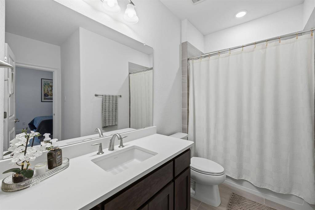 Upstairs, you'll find a large media room perfect for movie nights, game days, or relaxing with family. There's also a versatile open area that works perfectly as a home gym, yoga space, or extra living area. The spacious primary bedroom suite serves as a peaceful retreat with a luxurious ensuite bath and an impressive walk-in closet, while a second bedroom downstairs offers flexibility as a home office. The home is located just minutes from shopping, dining, and entertainment, including Target, Whole Foods, Barnes & Noble, and a variety of restaurants and bars.