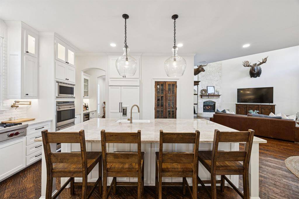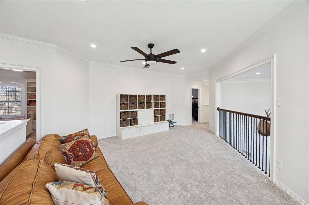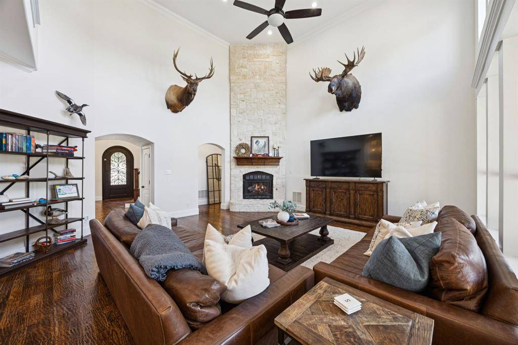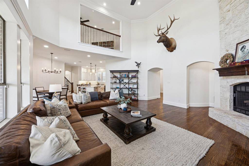 An extraordinary blend of elegance, privacy, and resort-style living awaits! Welcome home to this custom estate situated on over an acre and located in the private gated neighborhood of Estates at Copper Canyon. Over $340K in recent upgrades! From the moment you step inside, you're greeted by top-to-bottom designer upgrades and refined architectural details throughout. A sweeping grand staircase creates a striking first impression, paired with a private front office and spacious formal dining room. The chef's eat-in kitchen is a showpiece, featuring custom cabinetry, gas range, double ovens, wine refrigerator and bar, and a custom pantry—perfectly positioned to overlook the main living space. The open-concept floor plan flows into the expansive living room, highlighted by soaring ceiling, grand gas fireplace and dramatic windows framing views of the backyard oasis. Separate downstairs bedroom and bathroom make for the perfect guest quarters or mother-in-law suite. The primary suite is a true private retreat, showcasing stunning tray ceilings, dual vanities, spa-inspired soaking tub, oversized walk-in shower, MASSIVE custom-designed closet, and private access to the backyard. Upstairs offers three additional bedrooms, a spacious game room, and a dedicated theater-style media room for elevated entertaining. Outdoors, indulge in a resort-caliber backyard complete with a beach-entry heated diving pool, expansive outdoor living areas, an extended covered patio, and a separate cabana with fireplace—designed for year-round enjoyment. Completing the home is a 3-car oversized garage with custom cabinetry and epoxy flooring. Ideally located near fantastic shopping, fine dining, and award-winning schools—this remarkable estate offers luxury living at its finest. A rare opportunity not to be missed!