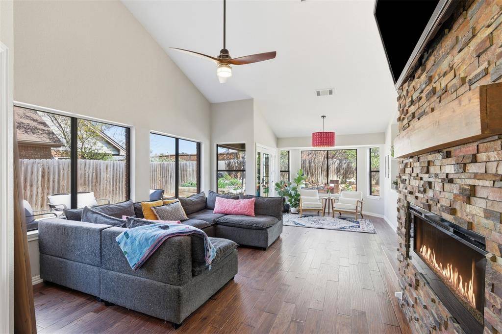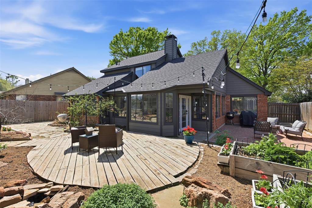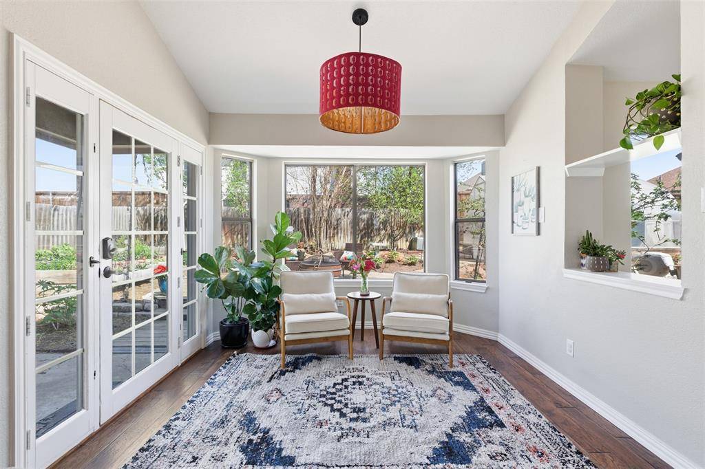 Welcome home to this charming, thoughtfully updated home nestled in the established Prairie Creek subdivision and perfectly situated directly across from Colony Park! From the moment you step inside, you're greeted by warm hardwoods, an open-concept floor plan and a stunning wall of windows that flood the main living spaces with natural light. The oversized living room, dining area, and cozy den provide flexibility and comfort, ideal for hosting gatherings or enjoying quiet evenings at home. The kitchen is designed with the home chef in mind, featuring abundant cabinetry, stainless steel appliances, granite, and additional storage in the nearby laundry room— ensuring everything has its place. The downstairs primary suite offers a private retreat, complete with dual closets and an updated ensuite bath, along with a convenient half bath for guests. Upstairs, you'll find three generously sized bedrooms and another full updated bath, providing ample space for family, guests, or a home office setup. Step outside to a backyard that looks and feels like a living sanctuary with a gleaming greenhouse at its heart, and cradled by layers of emerald foliage and blossoms in every shade, creating a serene, ever-blooming haven that any gardener would treasure. Feeding in to Flower Mound schools and conveniently located right across the street from the park, this home offers the perfect blend of comfort, updates, affordability, location, and charm! Come fall in love!