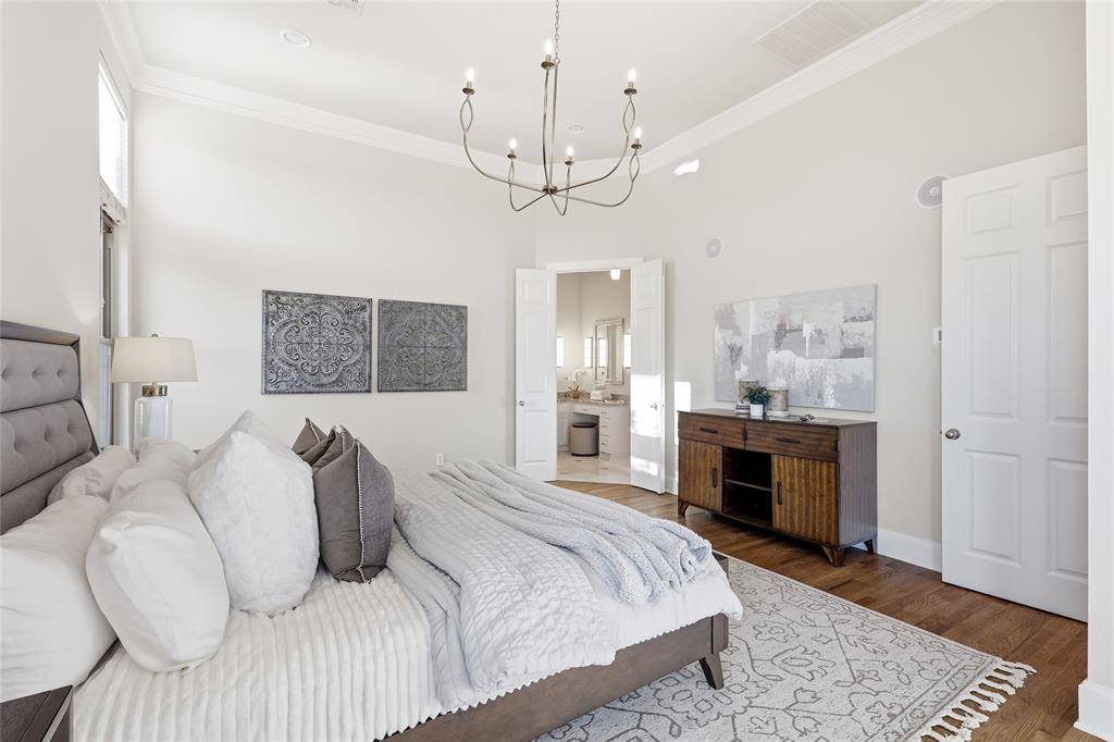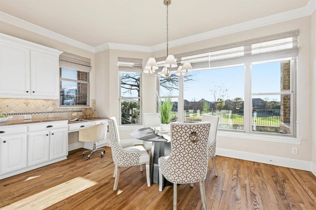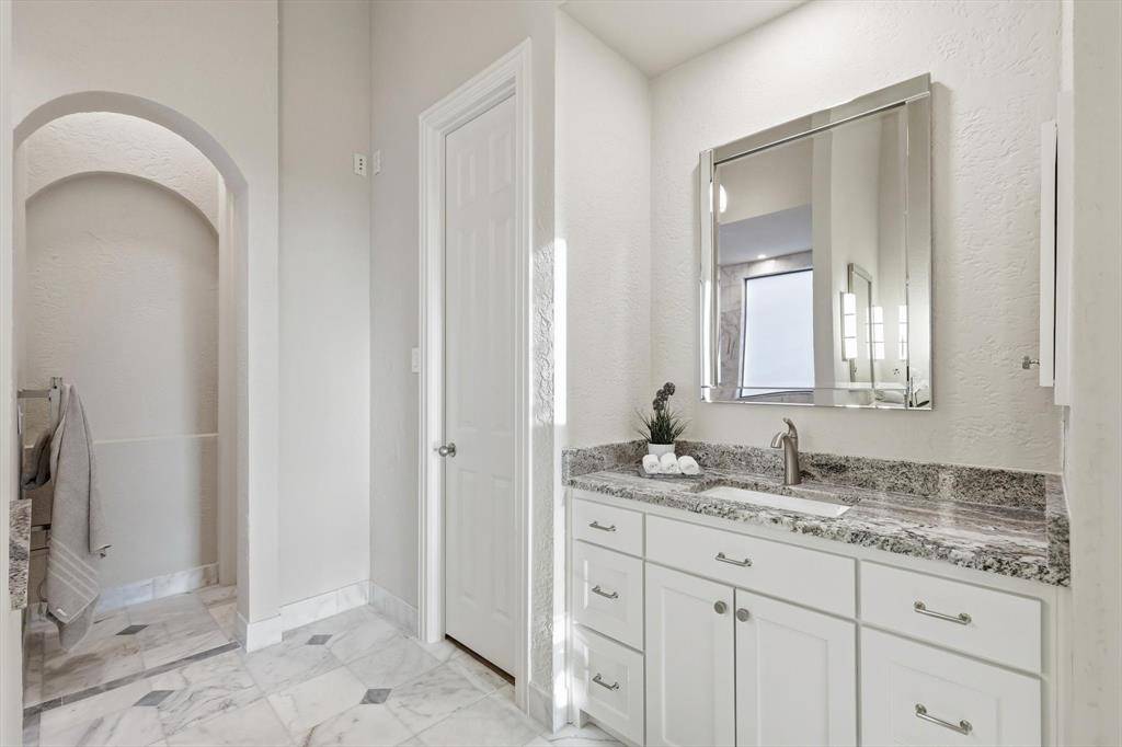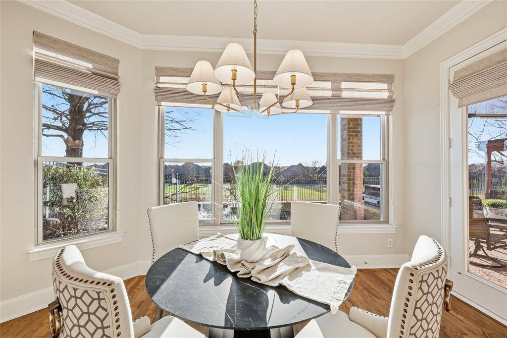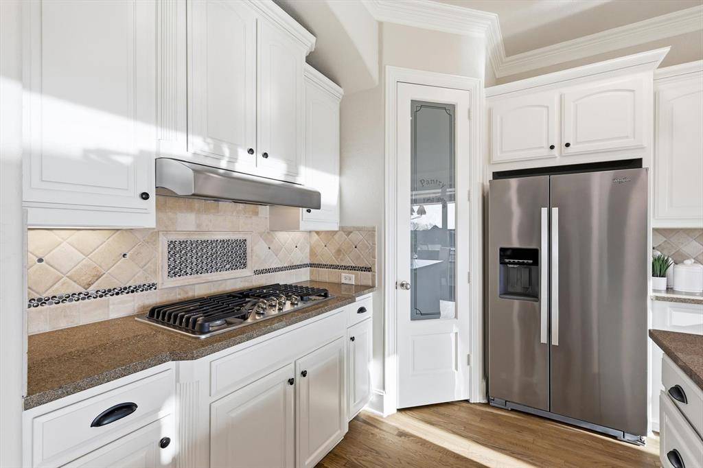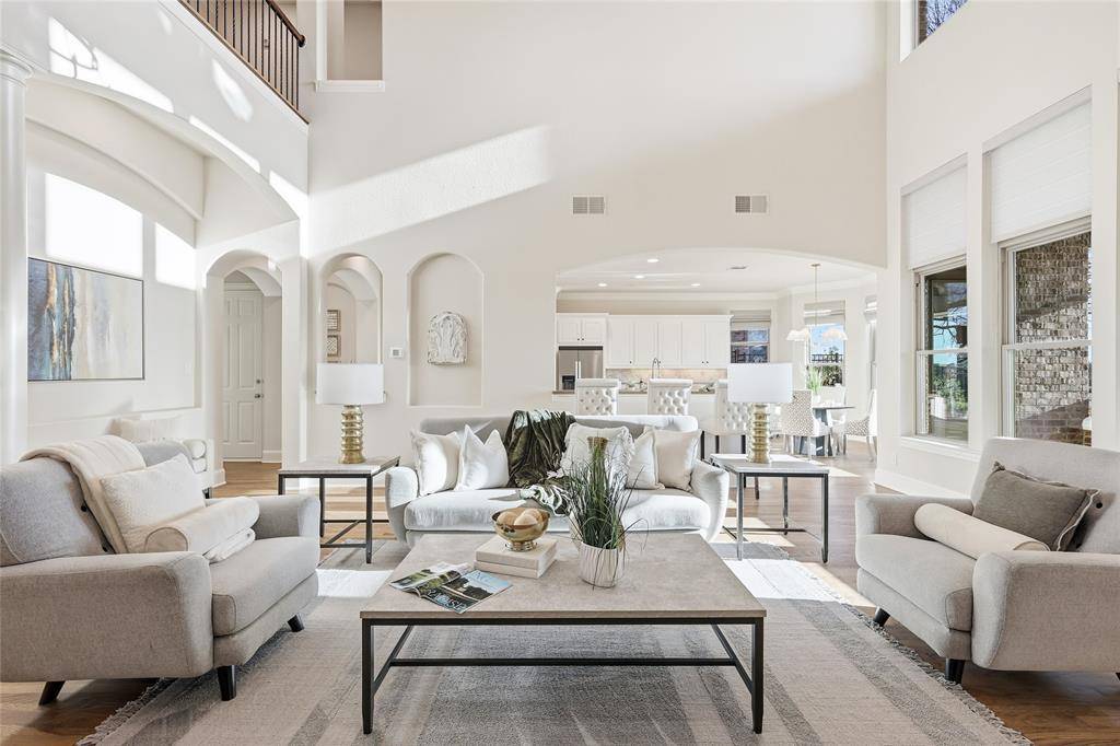 BRAND NEW TO MARKET & MOVE-IN READY! Luxury living on the 13th fairway with breathtaking, panoramic GOLF COURSE & WATER VIEWS. A perfect blend of elegance, comfort, & thoughtful design—paired with an easy to maintain backyard oasis. Your private retreat features a sparkling SALTWATER POOL & SPA, a charming arbor ideal for al fresco dining & a covered patio complete with a BUILT IN GRILL & AUTOMATIC SCREEN—allowing for seamless, year-round indoor-outdoor living. Inside, PRIDE OF OWNERSHIP shines at every turn. The home has been EXTENSIVELY REFRESHED with NEW PAINT throughout—including cabinetry, beautifully REFINISHED GENUINE HARDWOOD FLOORS in a versatile mid-tone chestnut color, brand NEW CARPET & PAD upstairs, and UPDATED LIGHTING with added recessed cans. The primary bathroom has been fully remodeled, showcasing a HUGE MARBLE SHOWER and even NEW CABINETRY. Natural light pours in highlighting SOARING CEILINGS and framing the stunning golf course & lake views. The thoughtfully designed 5 way SPLIT BEDROOM floor plan offers both PRIVACY and flexibility, including a downstairs MOTHER-IN-LAW SUITE with ensuite bath, as well as a luxurious primary suite with sitting area & direct patio access. A Texas-sized home office with a cozy gas fireplace creates the perfect work-from-home space. The expansive family room flows seamlessly into the chef's kitchen with a large island, GAS COOKTOP, stainless steel appliances, rich granite countertops, & exceptional storage—including a walk-in pantry, butler's pantry, full-size refrigerator, TWO WINE FRIDGES & 2 built-in COLD STORAGE DRAWERS. Upstairs, enjoy 3 bedrooms—one with a private ensuite and two connected by a Jack-and-Jill bath—along with an OVERSIZED GAME ROOM featuring a FULL WET BAR KITCHEN. An adjacent FLEX ROOM could be used for a home theater, fitness space, or home school room. A powder bath & private balcony complete the upper level. HUGE LAUNDRY ROOM WITH SINK, 3-CAR GARAGE with fresh EPOXY FLOORS, CLASS IV ROOF!