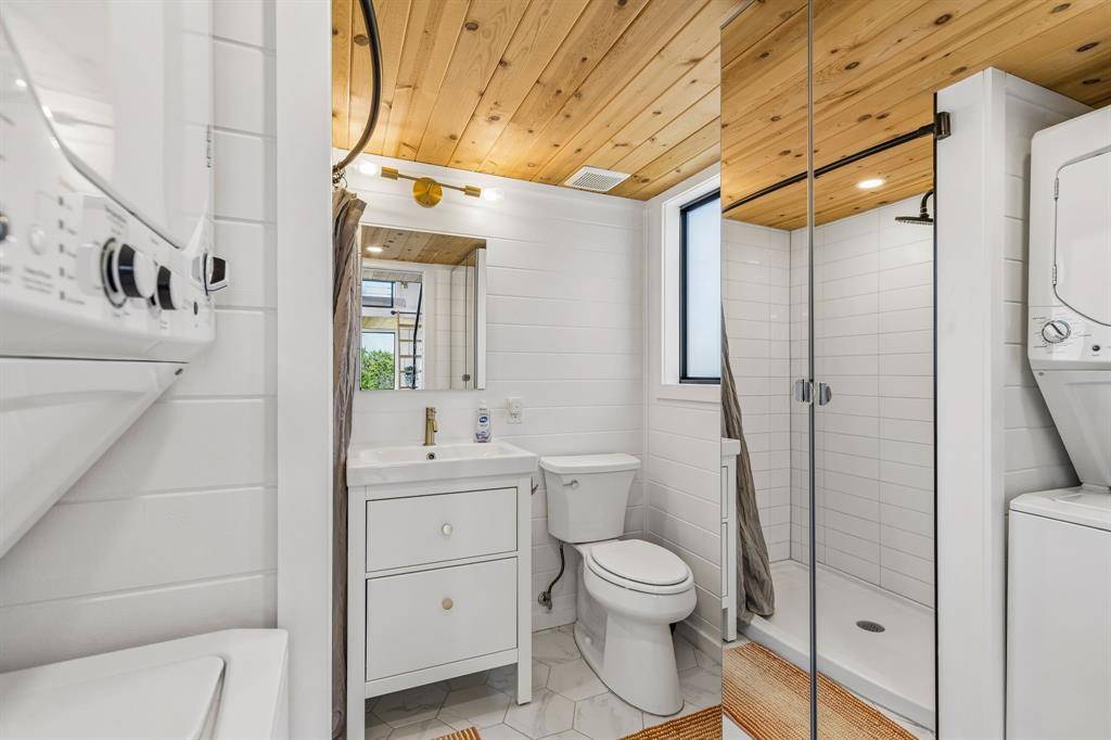The larger homes include a stacking washer and dryer, oven, double-burner cooktop, and refrigerator, while the third home is equipped with a washer-dryer combo, multifunction microwave with broil and air-fry capabilities, dual-burner cooktop, and refrigerator.