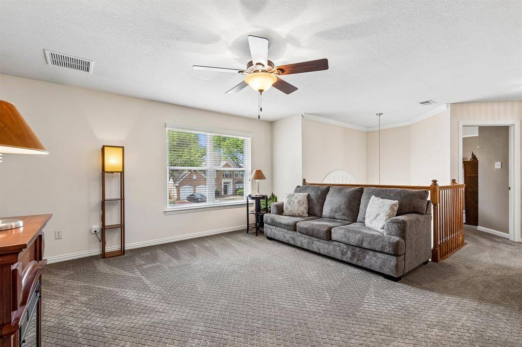 Welcome to this stunning 5-bedroom, 3-bathroom home in Glenwick Estates in Flower Mound, where comfort, space, and lifestyle come together seamlessly. Nestled in a quiet, tree-lined neighborhood, this beautifully maintained home offers an ideal layout for both everyday living and entertaining. Inside, discover two inviting entry living spaces, perfect for a dining room, home office, or flexible use. The home opens into a warm and spacious living room centered around a charming brick fireplace, with large, brand new windows that fill the space with natural light. The massive primary suite is a true retreat, offering ample space for a sitting area and a relaxing escape at the end of the day. Upstairs, a versatile game room provides the perfect space for movie nights, play, or additional entertaining. Out back, your private oasis awaits. Enjoy the Texas summers in the sparkling pool, surrounded by a beautifully designed patio and pergola area—ideal for hosting, grilling, or simply unwinding. With five generously sized bedrooms, flexible living spaces, and a highly sought-after location in Flower Mound, this home offers both functionality and charm in one exceptional package.