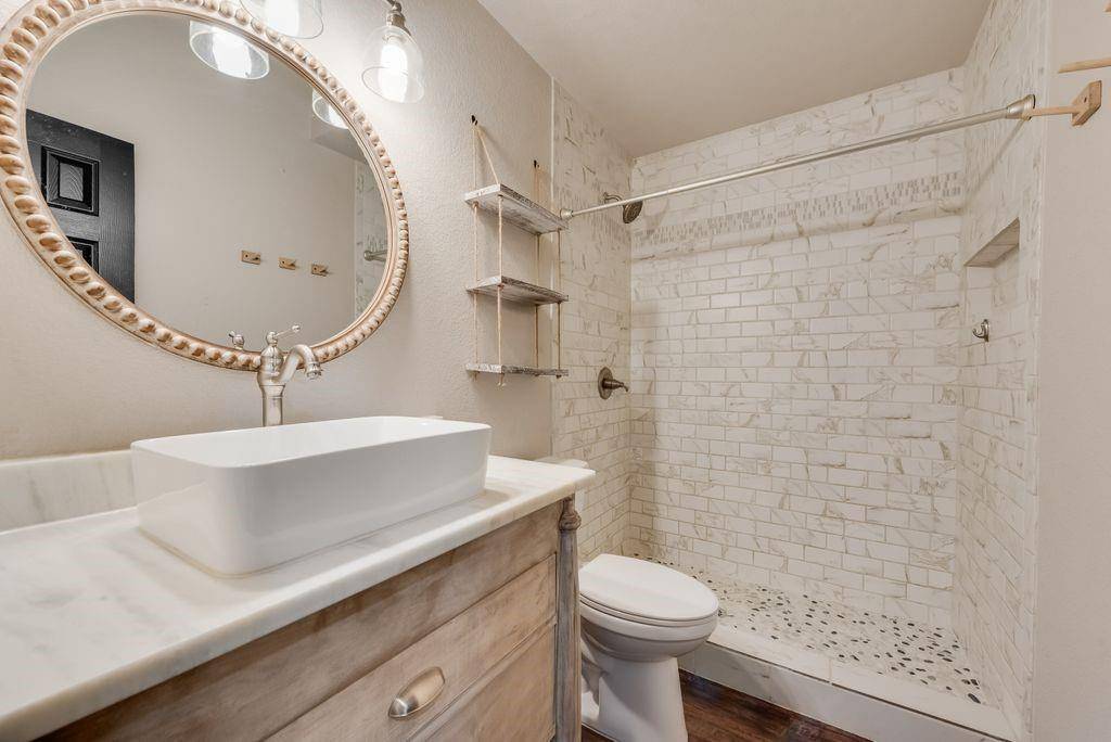 This Sanger special has been fully touched up to sparkle for it's new buyers! Turn-key property on a large lot means you have room for everything in the backyard and there's no HOA so bring your chickens to this sweet, quiet neighborhood tucked away on Sand Stone Dr. Baseball fan? We've got poles already installed for your batting cage nets, or use the sun sails included for extra shade! An extended patio gives you tons of entertaining space and the shed stays for all your additional yard party storage needs! Step inside this home to open living room, dining nook and kitchen refreshed and ready for your Saturday morning cup of coffee with tons of natural light! You'll find 4 bedrooms (4th is office but bonus room could be 5th!) all on the main floor in this home, with two tucked away in a private wing and a full bathroom with a large stand up shower. On the other side of the home, the Primary suite brings you lots of space in the bedroom and large windows, and a beautiful primary bathroom with dual sinks, a gorgeous standalone tub and a stand up tile and glass shower. Need a bit more space still? We've got you covered with a large bonus room upstairs that could be an additional large bedroom, overlooking the incredible backyard, along with an attached half-bath for convenience and a closet! Media room, play room, flex room - whatever you need! So many options in this home and it shines with purpose and intention! Sanger ISD, Clear Creek Elem, Sanger Middle and Linda Tutt HS.
