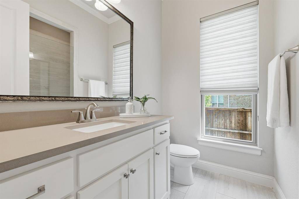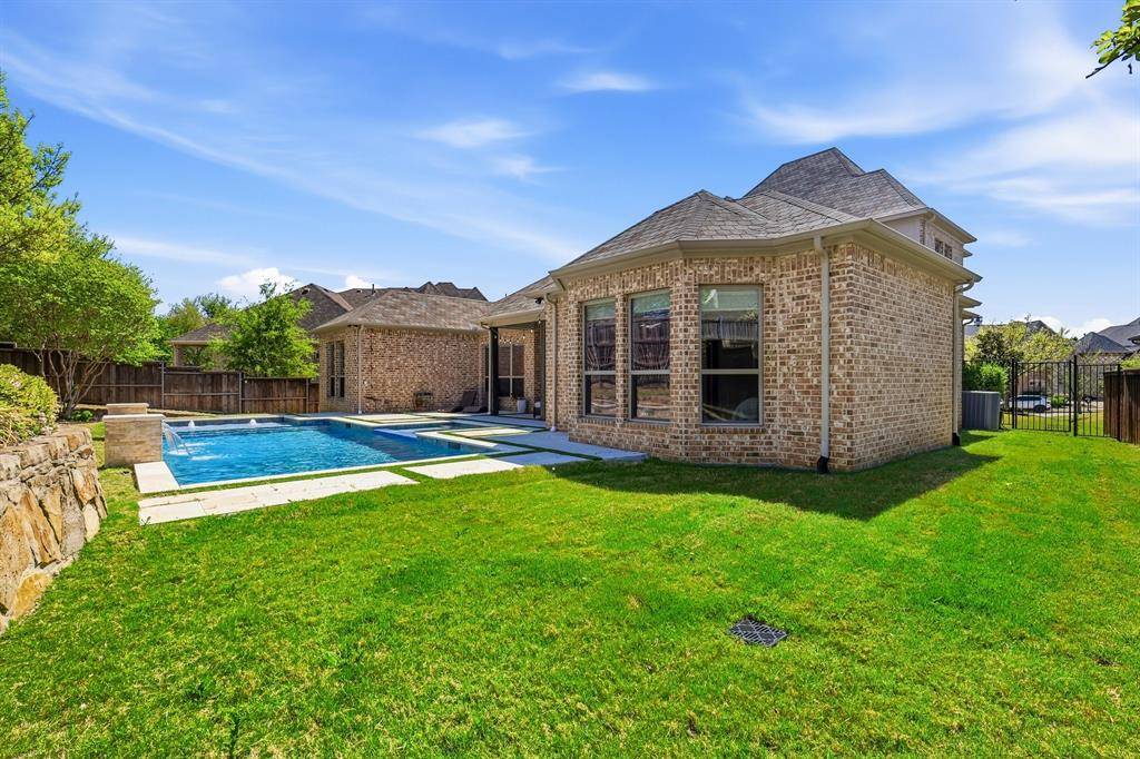 -Multiple offers received, sellers are requesting please the highest and best by Sunday at 5 pm, THANK YOU!-You've been searching.....and you've found it. Welcome to your stunning estate set within an exclusive gated community, nestled on a quiet cul-de-sac! This immaculate, one-owner home built by Heritage Homes exudes elegance, privacy, and sophistication. Inside, you'll find hand-scraped wood floors, plantation shutters, crown molding, soaring ceilings, and custom window coverings. The family room boasts a fireplace, built-ins, and a surround sound system. The chef's kitchen features granite counters, high-end appliances, an island breakfast bar, and a walk-in pantry. The luxurious primary suite features a tray ceiling, a frameless shower, dual granite vanities, a walk-in closet with built-ins, and a bay window sitting area. A downstairs secondary bedroom and bath accommodate guests. Upstairs, there's a game room and two additional bedrooms. Step outside into your private oasis: a beautiful pool with a spa and waterfall, an extended patio with a TV and ceiling fan, and modern turf-lined travertine pavers, just done in 2021. The backyard is low-maintenance and stunning. HOA covers yard maintenance. There is a private gate that leads to McKamy Middle School, steps away, just for the community. Attends top-rated Flower Mound schools—this is THE ONE!
