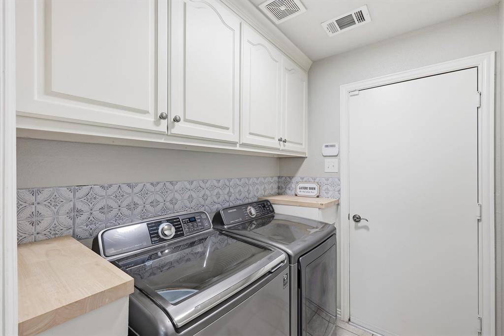 Upstairs features a spacious game room and four additional bedrooms, with one featuring custom built-ins—suited as a media room or versatile flex space to fit your lifestyle. Step outside to your private backyard sanctuary, with a covered outdoor living area, extended patio, and serene greenbelt views. With room to create your dream pool and outdoor oasis, the possibilities are endless. Enjoy Wellington's resort-style amenities—pools, tennis and pickleball courts, fitness facilities, and playgrounds—all just minutes from shopping, dining, major highways, and DFW Airport. This is a rare opportunity you won't want to miss!