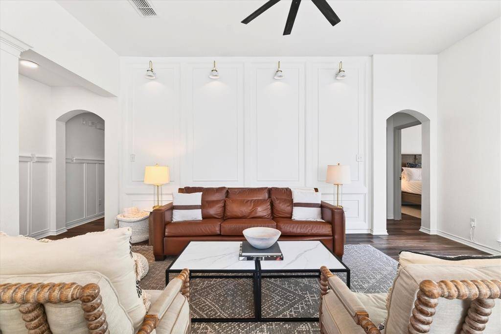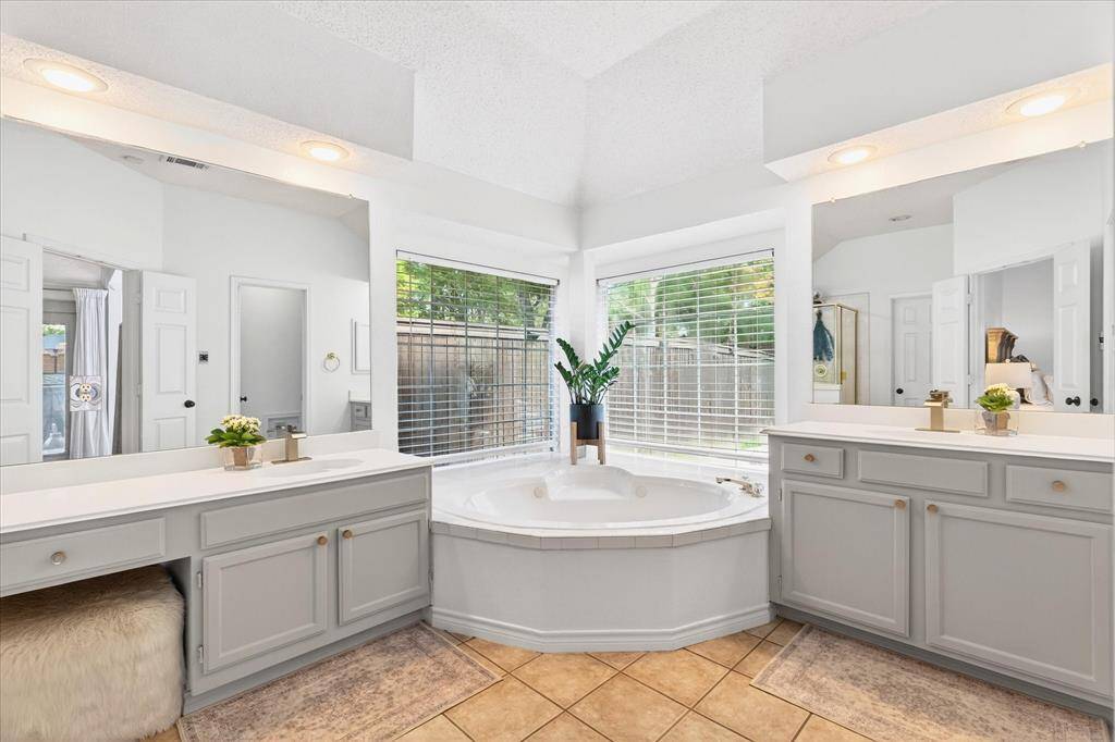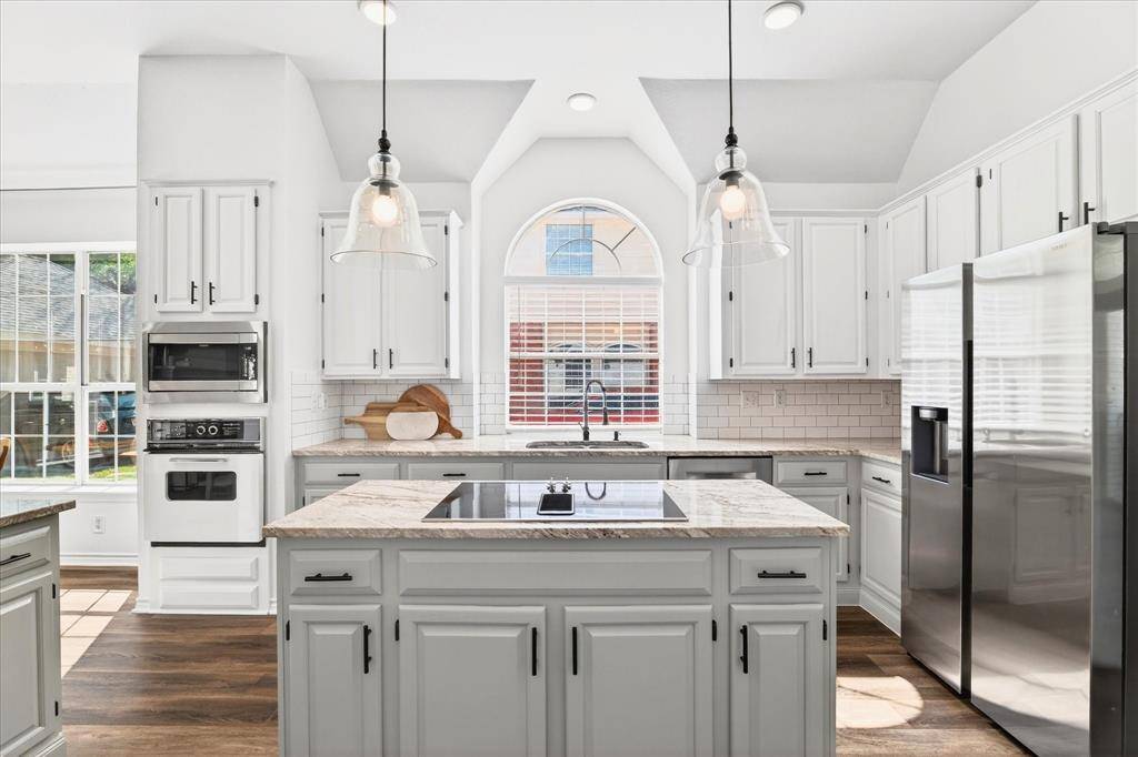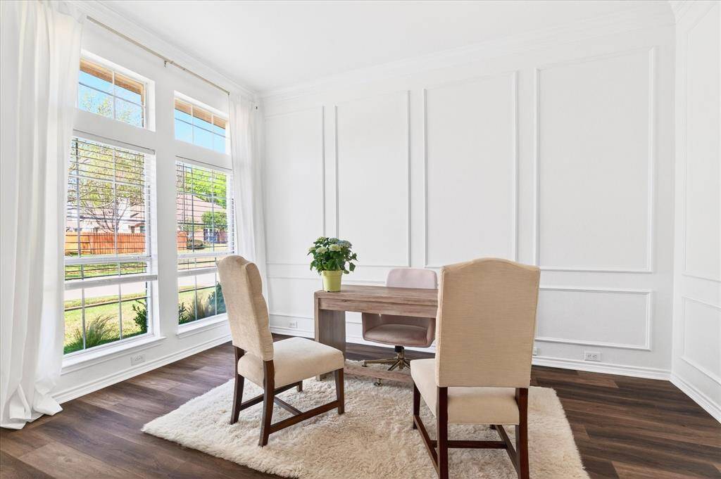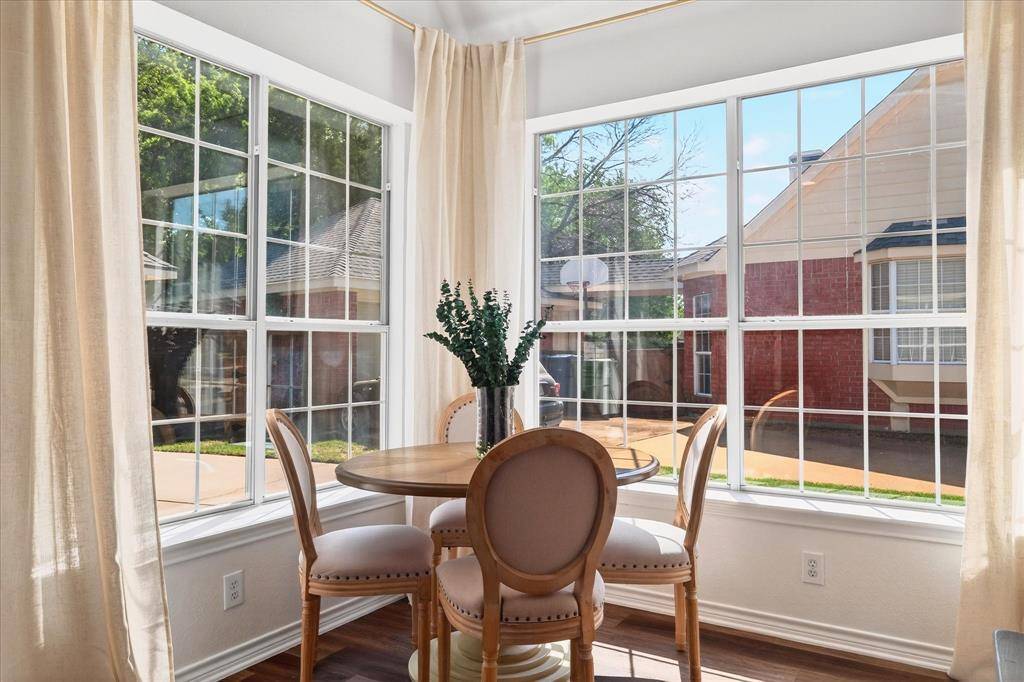 Single-story home on a premium greenbelt lot in Creekside at Cross Timbers—an uncommon combination of privacy, pool, and layout that's hard to find!!! Set within a highly desirable neighborhood known for its wide streets, mature trees, and newly updated parks, the setting feels established, quiet, and well-spaced. With no rear neighbors and tree coverage behind, the backyard feels like a TRUE oasis. The floor plan is both functional and flexible, with a dedicated study behind French doors at the front and a formal dining room with detailed millwork. The main living area is bright and open, centered around a fireplace and framed by large windows that bring in natural light throughout the day, all connected seamlessly to the kitchen for easy everyday living and entertaining. The kitchen is designed for real use, with an island cooktop, wraparound seating, granite countertops, subway tile backsplash, and direct connection to the breakfast area. The primary suite is set privately at the back of the home and includes a versatile sitting area that can flex as an office, nursery, or workout space, plus an en-suite bath with dual vanities, jetted tub, separate shower, and walk-in closet. Direct patio access makes the indoor-outdoor flow feel natural and intentional. The backyard backs to a gorgeous greenbelt and features a pool with extended patio space that allows for multiple seating areas, perfect for outdoor parties! The neighborhood is one of the most coveted in the area, as it is zoned to FMHS, is centrally located to both North and South Flower Mound amenities, and *gorgeous walking, running and bike trails, that you don't even have to leave the sidewalk to access!*. Meticulously maintained and move-in ready, offering a rare opportunity to own a single-story with this level of privacy, outdoor living, and layout in one of Flower Mound's most sought-after communities!