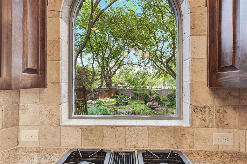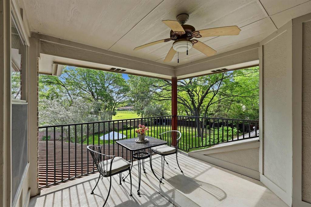 Outdoor living dazzles with gardens that begin at the front beds, wrap around the pool, and extend to a hidden garden enjoyed from the kitchen window. The covered back patio is a favorite spot to entertain, while the balcony above offers a place to rejuvenate.