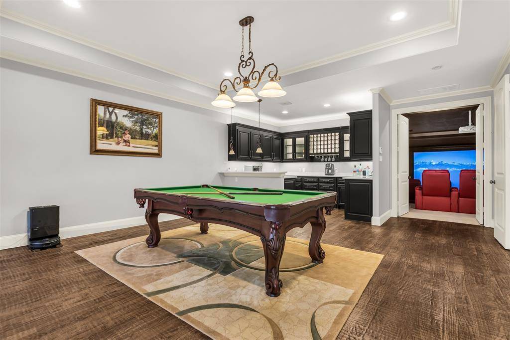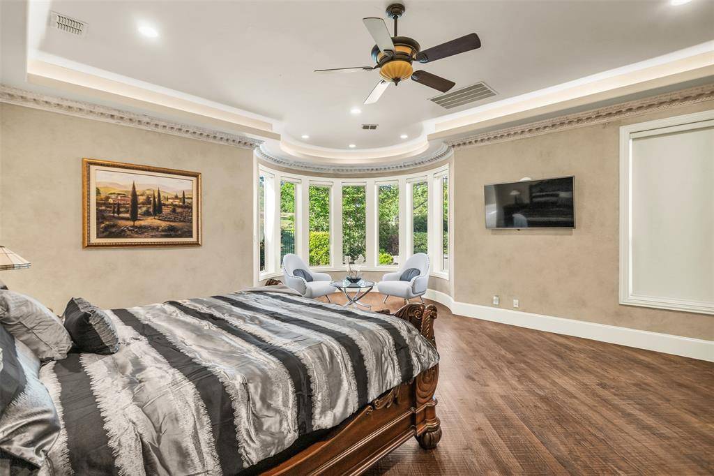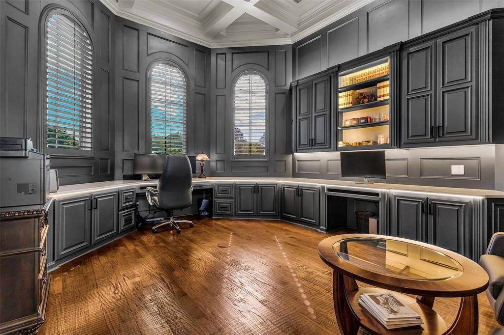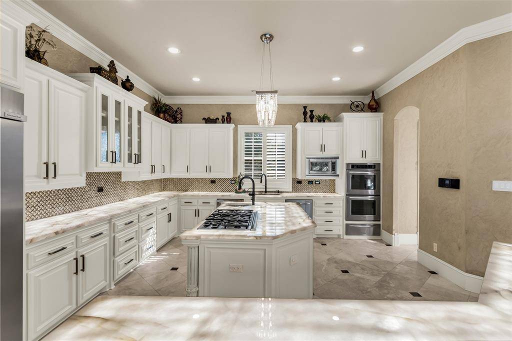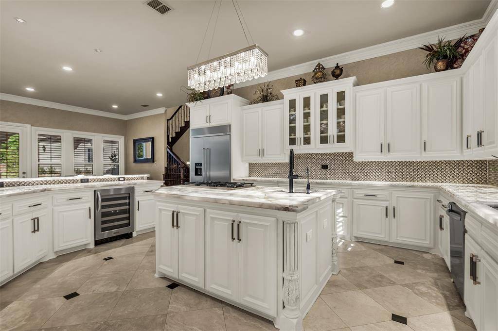 A stunning Mediterranean estate designed for those who love to entertain and live exceptionally well, this 7,499 square foot residence sits on 1.82 acres in a cul-de-sac on the golf course within the prestigious Estates at Tour 18, a 24-7 guarded and gated community. From the moment you step inside, soaring 25-foot ceilings create a dramatic and inviting presence, setting the tone for a home that is both grand and welcoming. Designed for hosting on any scale, the home features a dedicated media room, an large game room with kitchenette, and seamless indoor-outdoor living. The resort-style backyard offers a sports court, pool, and an impressive gas firepit, making it the perfect setting for unforgettable gatherings. At the heart of the home, the oversized kitchen is as functional as it is beautiful, featuring dual dishwashers, a vegetable sink, and striking lighted Cristallo countertops. Around the corner, a built-in desk area provides space for homework or everyday organization. The secluded master suite is a true retreat, complete with a sitting area. A versatile bonus room with a closet, ideal for a nursery, private office, craft room, or additional storage is nearby. The spa-like master bath offers a steam shower, rain head, and a towel warmer for a true luxury experience. Three additional bedrooms are upstairs, including one with its own balcony. A separate guest house offers comfort for extended stays or multigenerational living. Every detail has been carefully chosen, from marble countertops in all bathrooms to a central vac system, electronic window treatments, and chandeliers that lower electronically for easy maintenance. Set within one of the area's most sought-after gated communities with scenic golf course views, this home offers a rare combination of privacy, scale, and elevated living. You can keep searching… but you won't find another one like this. Many furnishings in the home are available for purchase.