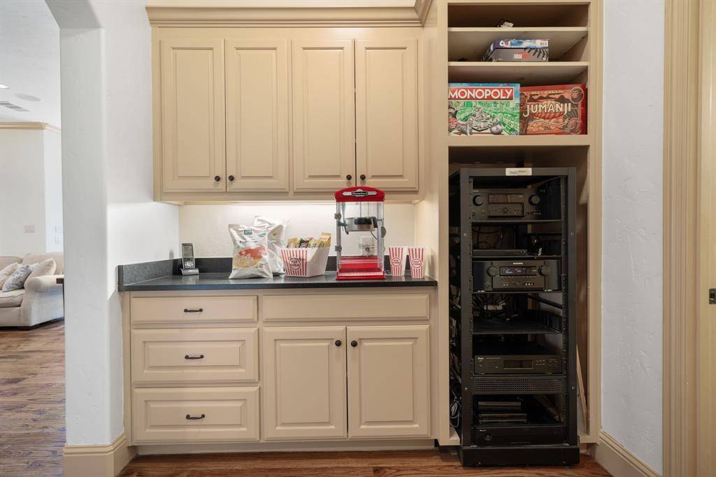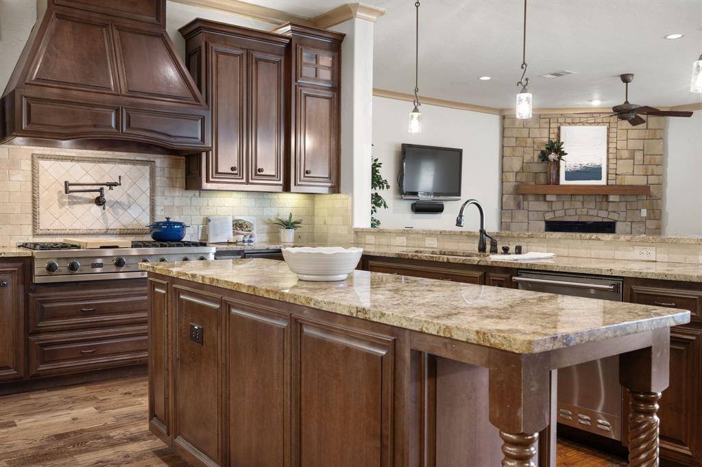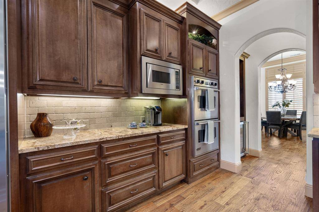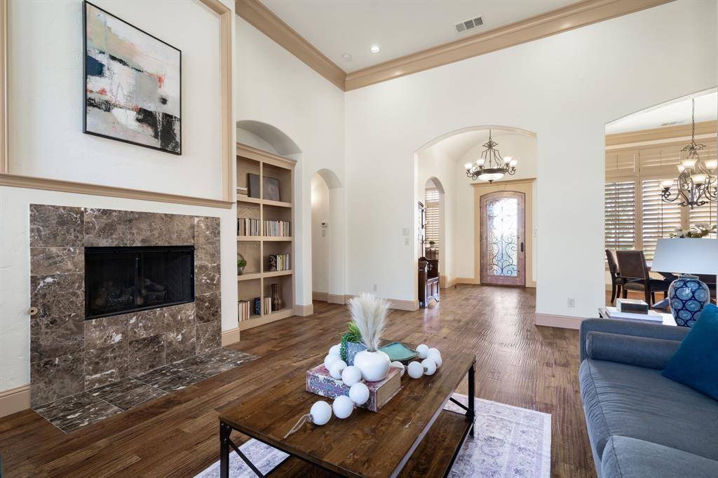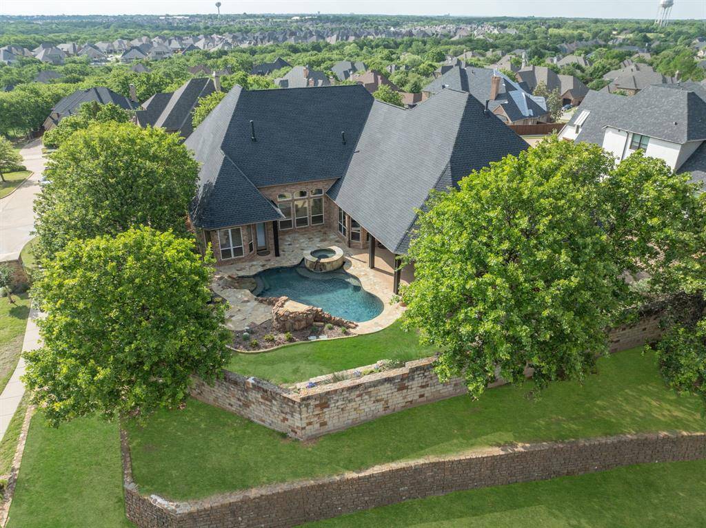 Custom-designed single-story home tucked away on an oversized, secluded corner lot with mature landscaping, accent lighting, stone facade, and a view that will surely enchant all of your family and friends. This home exudes luxury with freshly painted interior, opulent finishes, designer touches, and a seamless layout that is perfect for entertaining. The gourmet kitchen will impress the most discerning chefs, complete with an island, built-in refrigerator, butler's pantry, gas stove, and double ovens. The primary suite is a sanctuary, offering high ceilings, a sitting area, and an ensuite bath that is the epitome of relaxation, with dual vanities, a soaking tub, and an opulent shower. Unwind in the family room, read a book in the library, enjoy the built-ins in your office, or retreat to the media room for a cinematic experience—this home has it all. Step outside to your own oasis, featuring a saltwater pool, spa, waterfalls, and outdoor living space with a fireplace and kitchen.