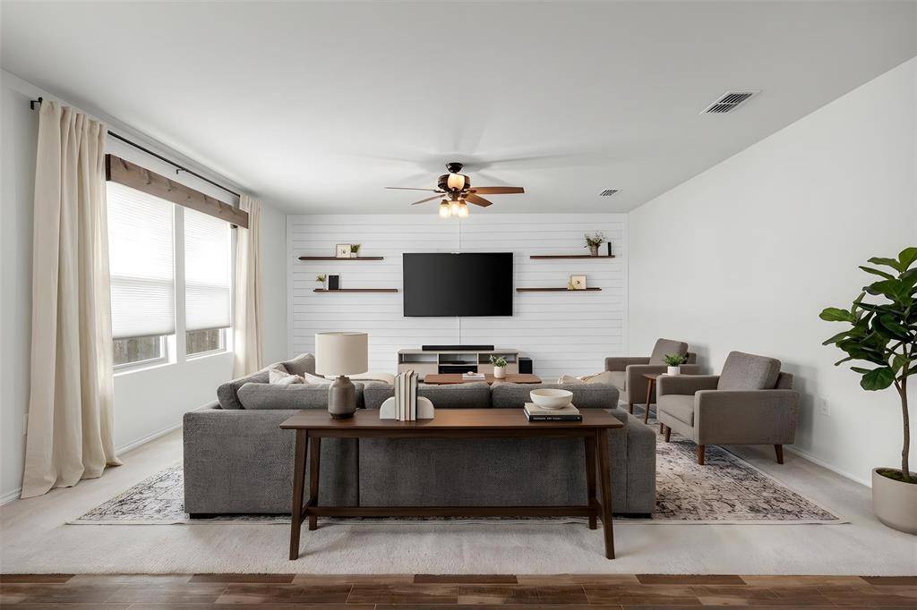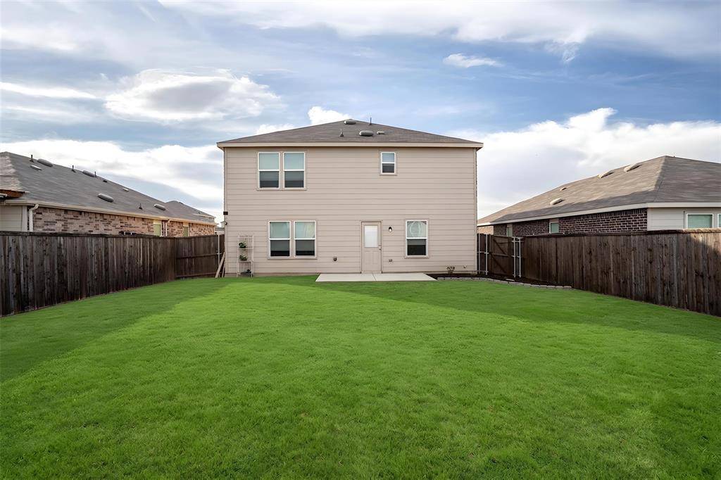 Welcome to this beautifully designed two-story home featuring 3 bedrooms, 2.5 bathrooms, multiple living areas, and a versatile flex room perfect for a home office, guest room, or playroom. The open-concept layout seamlessly connects the kitchen, breakfast area, and main living space—ideal for both everyday living and entertaining—while a spacious backyard offers plenty of room to relax or host gatherings. Upstairs, you'll find a large second living area, a full-size utility room, and a private primary suite with dual sinks, a soaking tub, separate shower, and a generous walk-in closet. Located in a highly desirable community with amenities including a pool, playground, soccer fields, and scenic walking trails, this home is within walking distance to top-rated elementary schools and just minutes from H-E-B, Costco, Home Depot, hospitals, dining, and more, with convenient access to the newly renovated Highway 380 connecting you directly to the Dallas North Tollway—offering comfort, flexibility, and a prime, well-connected location.