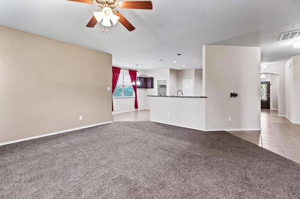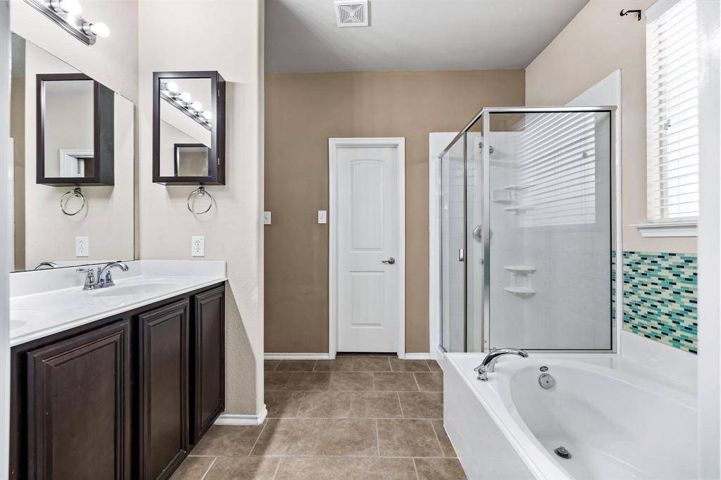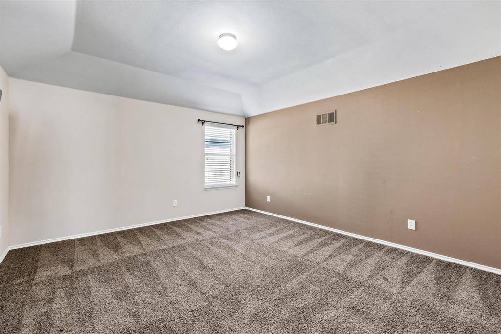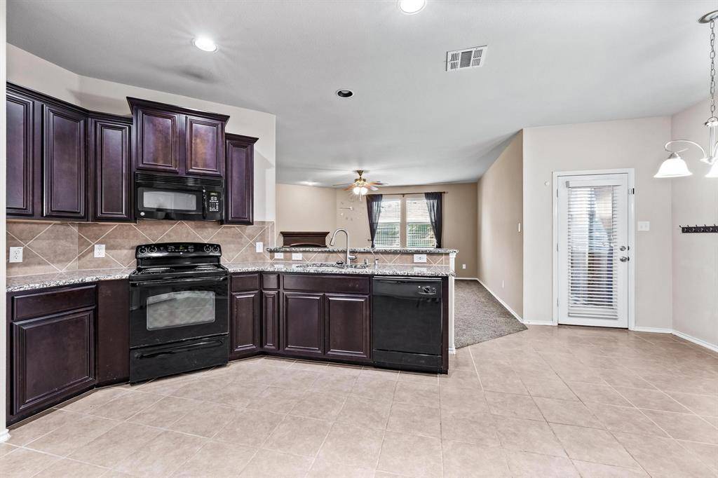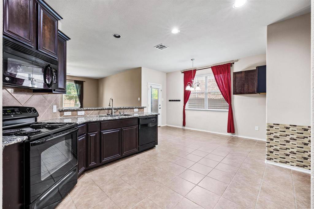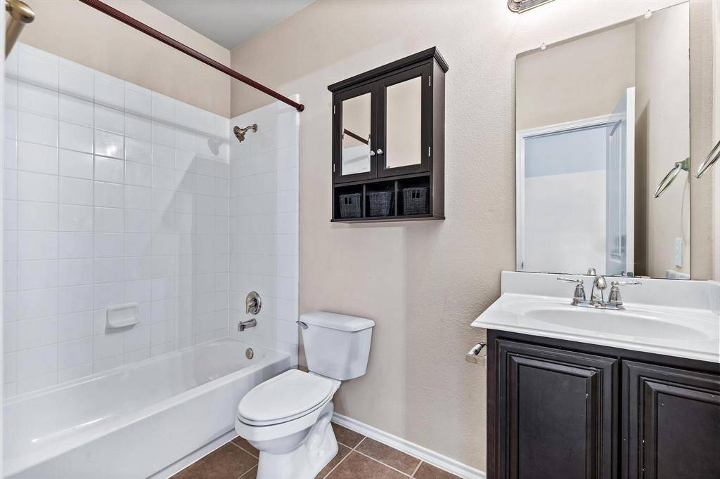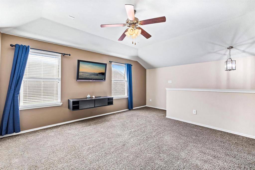 Available for immediate occupancy! This home offers a very flexible floor plan.Primary and 2 secondary bedrooms are downstairs. Upstairs features one large bedroom with large closet, could also be a media room, full bath, and 2nd living area or game room. Spacious kitchen with breakfast bar, black appliances, granite countertops, breakfast nook, large pantry, and open to the family room. Family room with decorative fireplace can accommodate large furniture. Extended garage with lots of lighting, great for a workshop! Beautifully landscaped! Large backyard with screened in back porch area. Just one block over from the community pool, playground, and splash pad! Close to Lake Lewisville, golf courses, and all that Frisco has to offer!