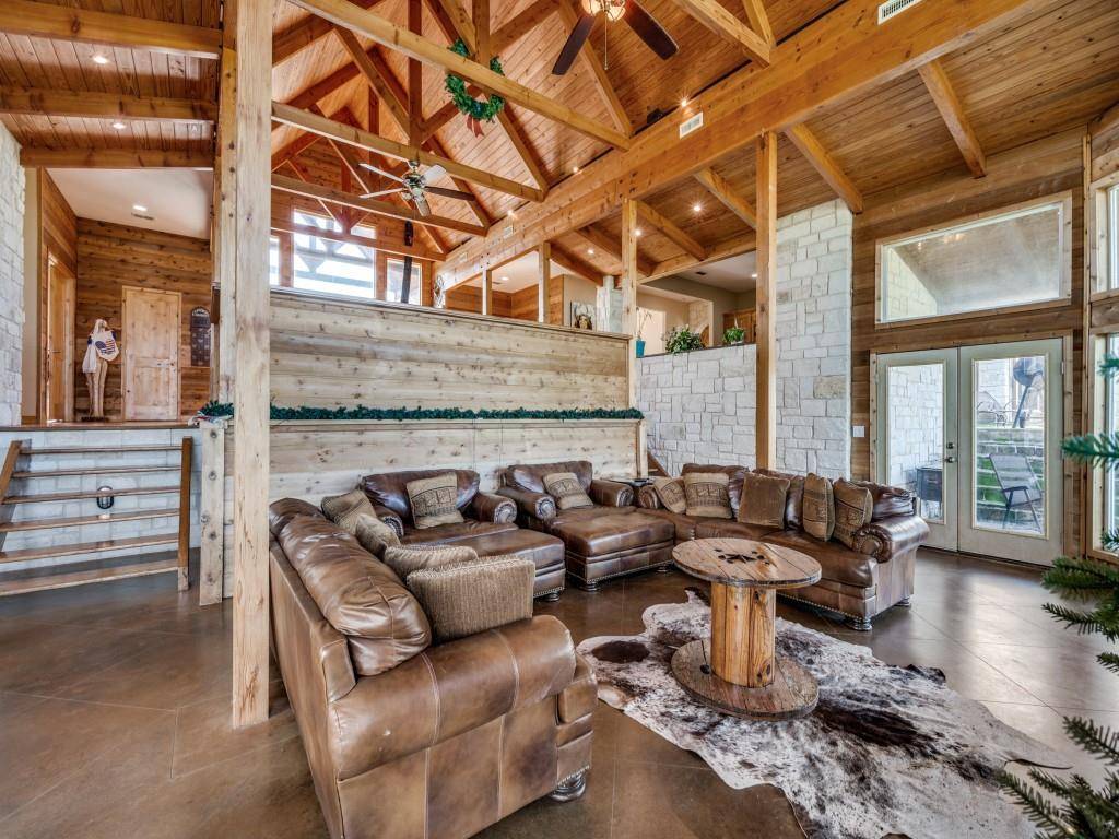 Multi level home on acreage with lake views from your living and bedroom , stone home with metal roof property ag exempt , great access to interstate and the Lake and state parks , The media room is also a safe room ,Custon built home on acreage room for cattle , horses great location with so much in the area , minutes away from the state park entrance