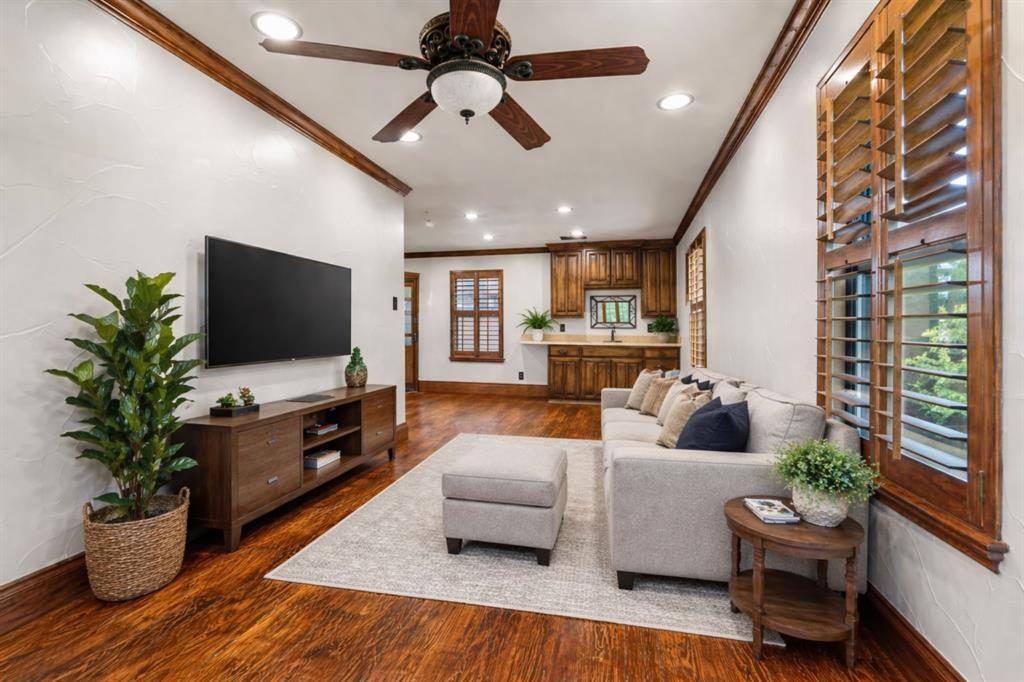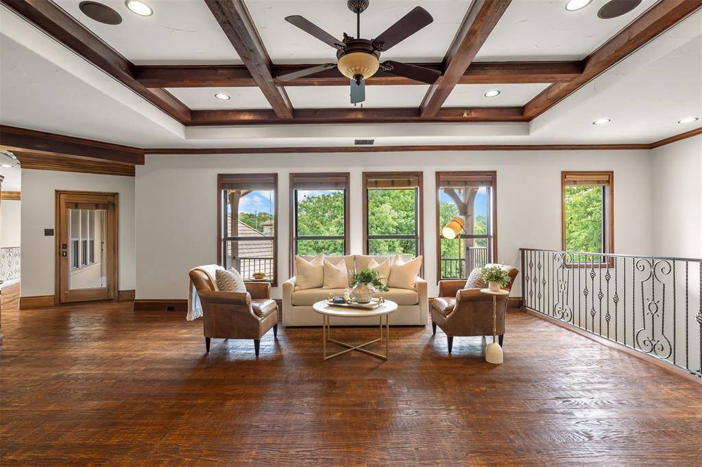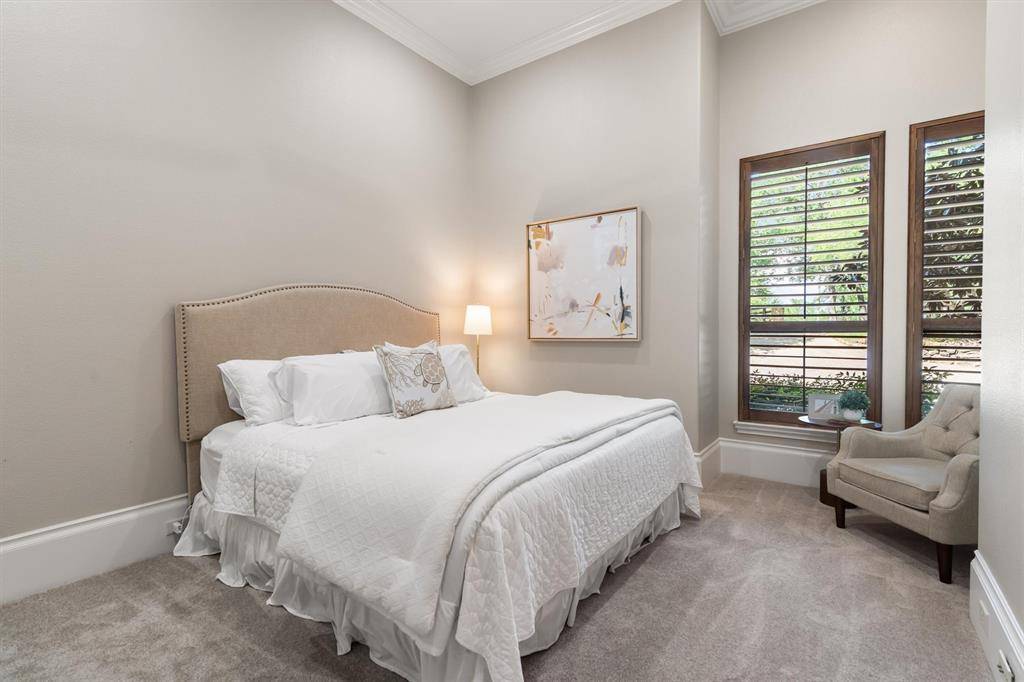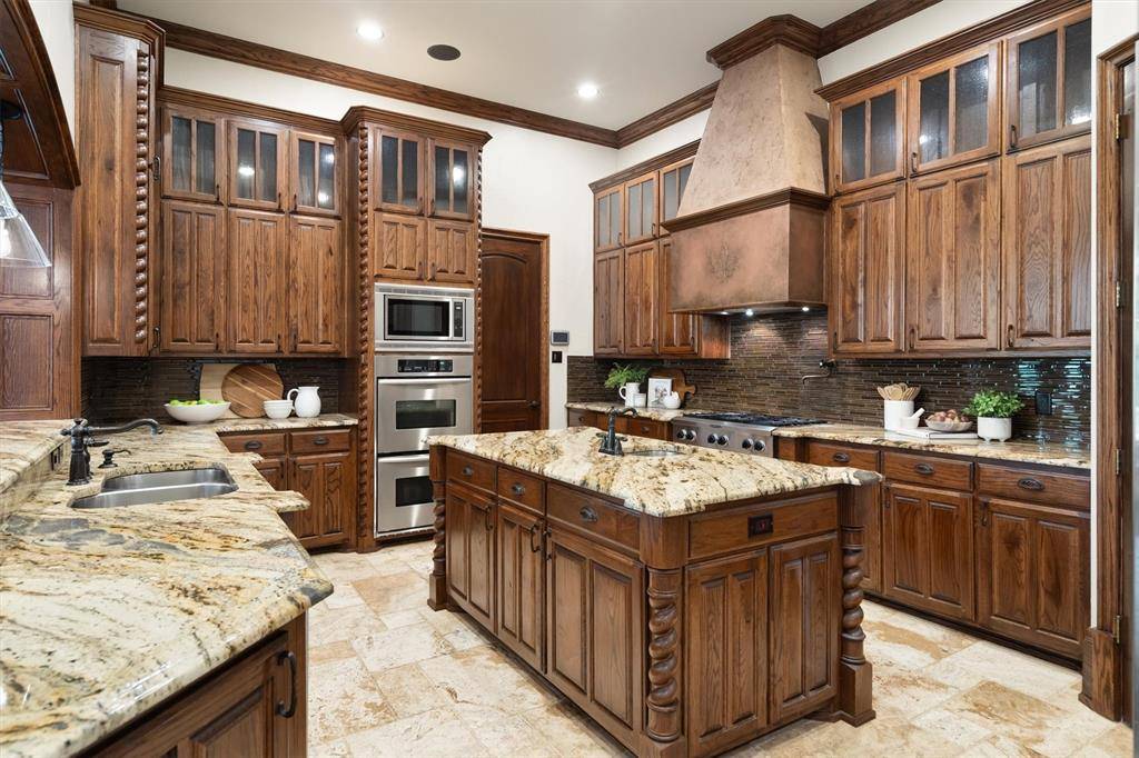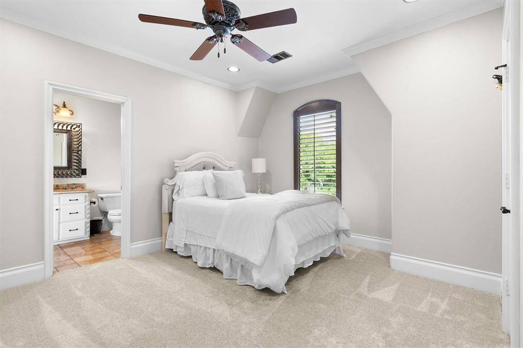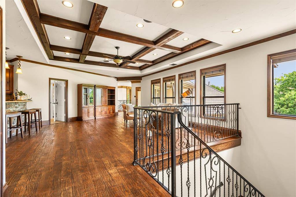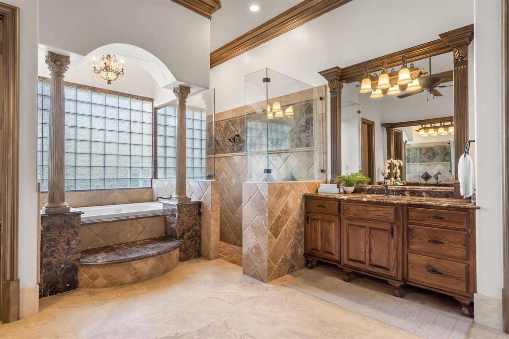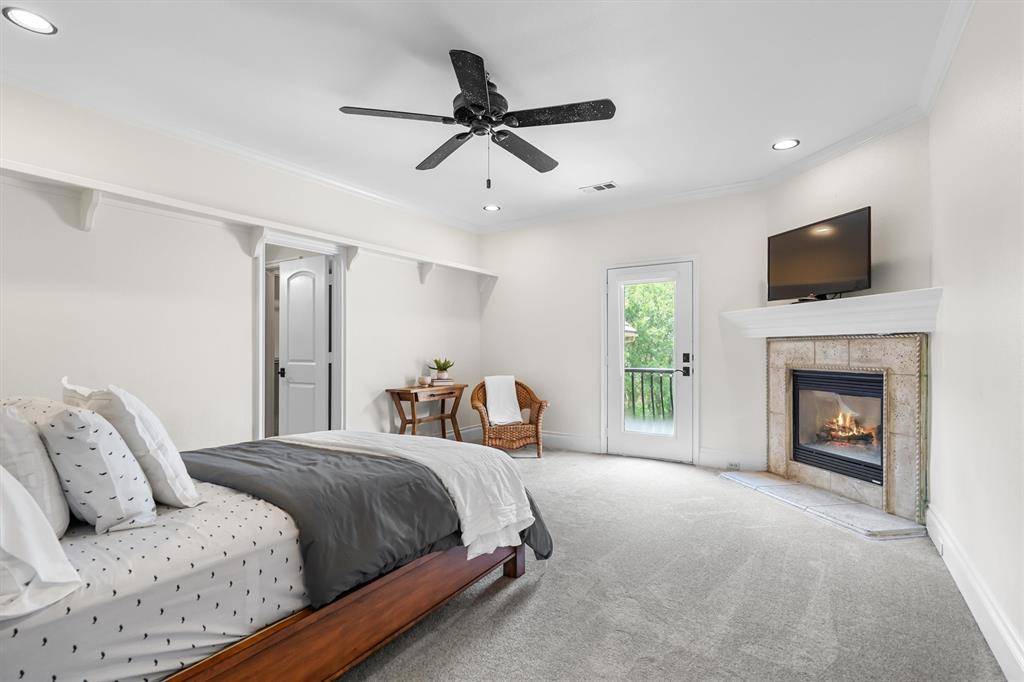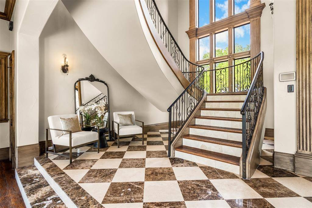 Tucked away on over 2 private acres, surrounded by multi-million-dollar estates, this 5-BR home w. no HOA beautifully blends luxury, comfort & natural beauty, backing to Army Corps of Eng. land along Grapevine Lake for exceptional privacy & serene views. Step thru the marble-tiled grand foyer w. soaring 2-story ceilings & immediately take in the view of the breathtaking backyard oasis. Rich woodwork, elegant chandeliers & 6 FPs create a warm yet sophisticated atmosphere thru-out this home. A car enthusiast's dream: 4 garages (1 w. lift, 1 tandem) accommodate up to 8 vehicles. The private owner's wing offers a primary suite w. tray ceiling, FP & sitting area overlooking the grounds. The spa-inspired bath features dual vanities, oversized shower, flows into an enormous custom WI closet. Just outside are a dedicated office & private garage access. In the opposite wing, a secondary suite w. sitting area, ensuite bath & WI closet sits across from the formal dining. A wet bar adjacent to the breakfast rm opens to the outdoor living via a convenient pass-thru window. The chef's kitchen is fully equipped w. BI fridge, dbl ovens, 6-burner gas cooktop, expansive island w. prep sink & brkfst bar, all opening to a sunlit brkfst area. Triple stone arches lead to the living rm w. coffered ceiling, floor-to-ceiling stone FP, built-ins & walls of windows. Upstairs, a private wing features an expansive media rm w. wet bar. Down the hall, a 2nd family rm w. coffered ceiling & bar area opens to a balcony overlooking the pool & tranquil grounds. 3 additional BRs, 2 w. corner FPs & private balconies, feature ensuite baths & WI closets. A massive game room w. FP & wine bar is accessible via a staircase from the LR downstairs, while separate guest quarters include a living & kitchen area, full bath & private garage access. Outdoors, unwind in the resort-style backyard w. covered patio, sparkling pool w. spa & grotto, a lush lawn framed by mature trees beyond. Your own private sanctuary!