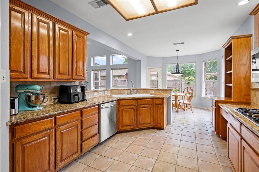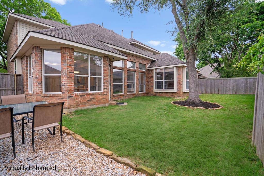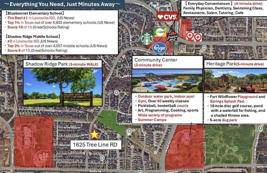 Click Virtual Tour link to view 3D walkthrough. Nestled in the highly sought-after Shadow Ridge South community of Flower Mound, this stunning home offers the perfect blend of timeless comfort and modern elegance. Known for its family-friendly atmosphere and highly A rated schools in Lewisville ISD. Flower Mound consistently ranks among the best places to live in TX and the U.S. Set on a quiet, tree-lined street, the home welcomes you with an inviting foyer that opens to a bright, airy space with soaring ceilings and abundant natural light, creating a warm, welcoming ambiance throughout. The spacious living room centers around a cozy fireplace ideal for relaxing evenings or entertaining guests. The open-concept kitchen is both stylish and functional, featuring stainless steel appliances, double ovens, a built-in microwave, granite countertops, and a built-in desk perfect for meal prep, organization, or casual dining. The primary suite, located on the main floor, offers a peaceful retreat with large windows overlooking the shaded backyard. The private ensuite bath provides his and hers walk-in closets, soaking tub, and a serene space to unwind after a long day. A spacious upstairs loft overlooking the main living area, ideal as a second living area, home office, study space, or playroom, and two bedrooms, offering comfort and flexibility for family or guests. Outside, the beautifully landscaped yard enhances the home's curb appeal and provides a tranquil outdoor space for relaxation or play. HOA is just $298 per yr! Recently updated-new roof 2023, HVAC system 2024, water heater 2023, and first-floor engineered wood flooring 2025. The foundation has a lifetime warranty. The backyard features drainage improvement and refreshed landscaping in 2025. Situated just minutes from Heritage Park, and the vibrant Lakeside DFW area, the home offers easy access to DFW Airport, major highways, shopping, and entertainment delivering the ideal balance of tranquility and convenience.