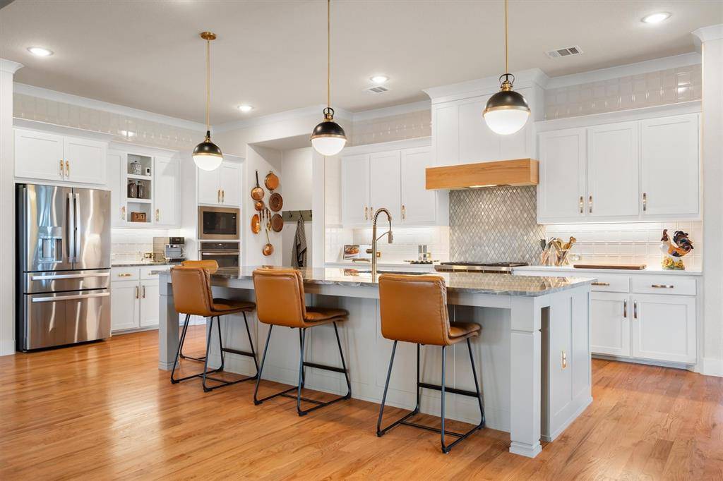 From the moment you enter, you are greeted by fresh custom paint, rich hardwood flooring, recently updated baseboards, and designer lighting that elevate every space. Thoughtfully curated with custom roller shades, drapery, and built ins throughout, this home blends luxury with everyday functionality.