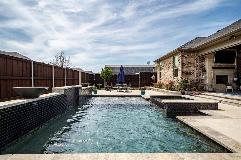 Step outside to your private resort style oasis with a recently built pool and spa featuring fountains, color changing lighting, and a fully electronic system, surrounded by an expansive concrete and travertine deck. Enjoy year round entertaining with a covered patio featuring a gas fireplace, TV setup, electric sunshade, and custom privacy screen, all enclosed by a recently added 8 foot privacy fence.