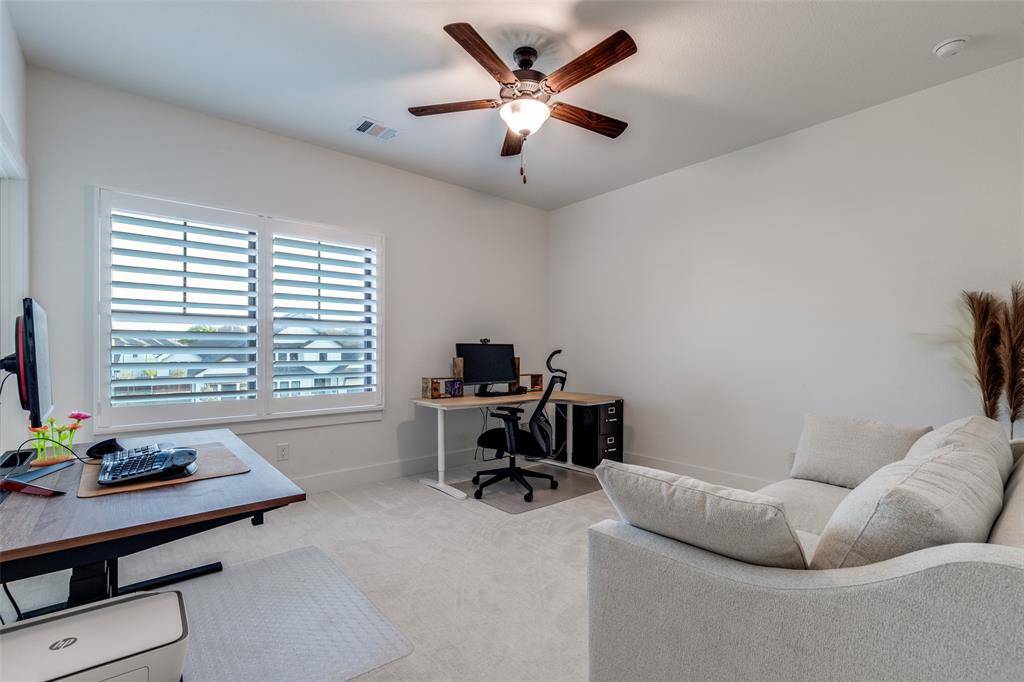 Step into refined luxury in this exceptional newly constructed residence (2023), perfectly positioned on a premium corner lot in a pristine gated community offering over 4,156 square feet of sophisticated living space. Designed for both grand entertaining and everyday elegance, the main level showcases a seamless blend of form and function with two spacious bedrooms, a private executive study, and an impressive media lounge ideal for a home theater or game room. Expansive living and dining areas create an inviting atmosphere, enhanced by designer finishes and architectural detail. Upstairs, a private retreat awaits with three additional bedrooms and a generous secondary living space—perfect for a lounge, gallery, or make it your own. No detail has been overlooked. Curated upgrades include custom wainscoting, plush designer carpeting, a custom built-in workspace, striking exposed beams in the great room, and plantation shutters throughout, delivering both style and timeless sophistication. This is more than a home—it's a statement of elevated living. Refrigerator and washer and dryer not included. Pets are limited to one dog no more than 25lbs and breed restrictions apply. No cats.