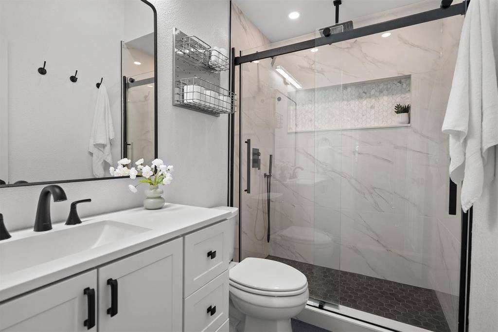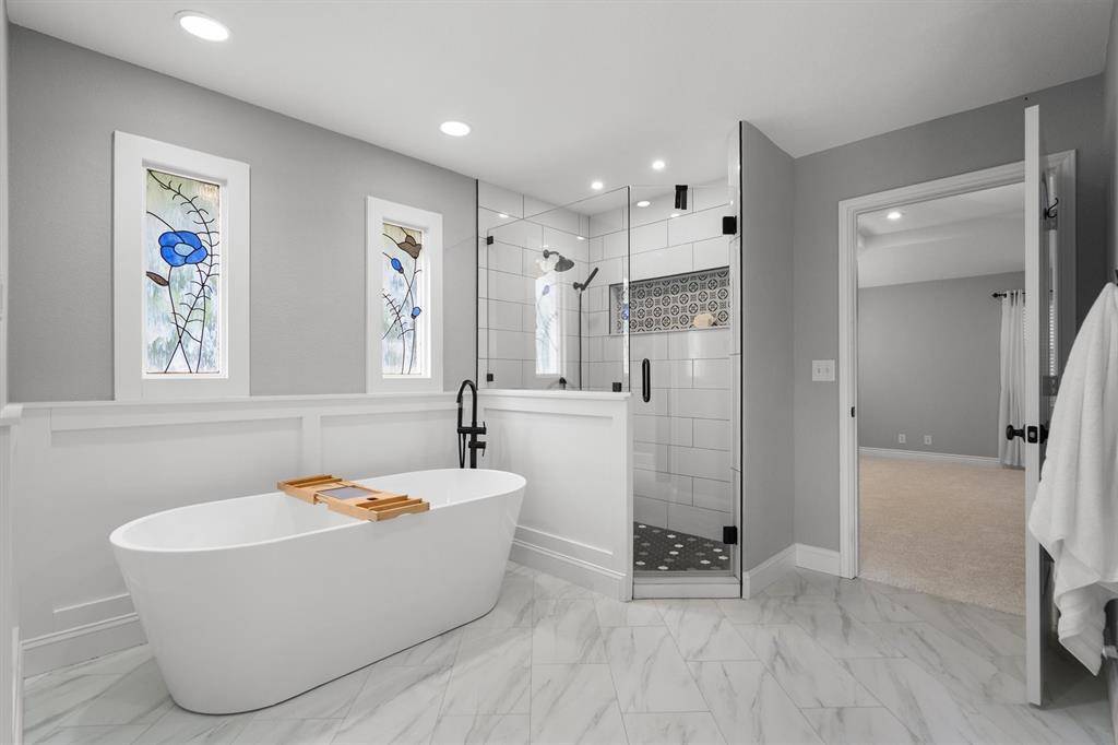 Commanding over 1.3 acres of 30+ 100year Post Oaks in coveted Double Oak, this Southern estate delivers rare architectural character elevated by comprehensive, high-caliber updates. Five bedrooms, four-and-a-half baths, and a three-car garage position this property among the most functional and desirable offerings in the Dallas-Fort Worth metroplex. A sweeping front porch creates a commanding first impression and serves as a signature feature that defines this home's timeless curb appeal. Step inside to discover two expansive living areas anchored by custom built-ins and three fireplaces, creating an environment masterfully designed for both refined entertaining and comfortable everyday living. Fresh interior and exterior paint, brand-new wood and carpet flooring (2026), and a fully renovated kitchen (2025) deliver turn-key luxury with enduring quality. The kitchen's improved layout connects seamlessly to the main living spaces, making it the true heart of the home. Every bedroom is appointed with a private ensuite bath and walk-in closet, a rare and exceptional offering that sets this home apart from the competition. A 5th bedroom added in 2015 updating the functionality of the layout with adjoining full bathrooms for all bedrooms Outside, your private backyard retreat awaits. A renovated pool, updated deck, covered patio, large balcony, and newly added porch treatments and surfaces create a year-round outdoor living experience that is simply unmatched at this price point. A full RV hookup complete with electric, water, and septic access adds extraordinary utility few properties can offer. Major systems have been strategically replaced for long-term peace of mind: roof (2023), windows (2021), gutters (2023), septic system, HVAC units, and garage doors. A Tesla EV charger and epoxy-finished garage flooring complete this meticulously maintained, move-in ready package. Served by highly regarded Lewisville ISD. Rare acreage. Timeless character. Zero compromises.